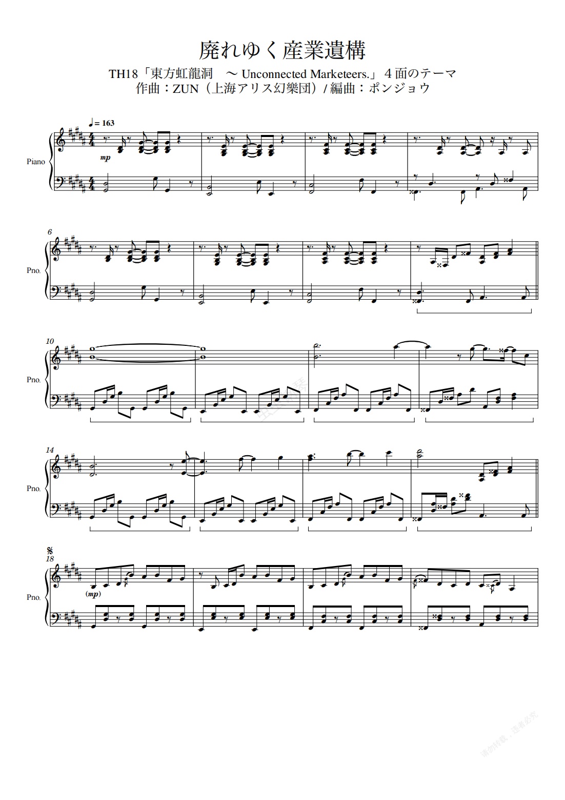 钢琴谱:【东方虹龙洞】日渐荒废的工业遗址
