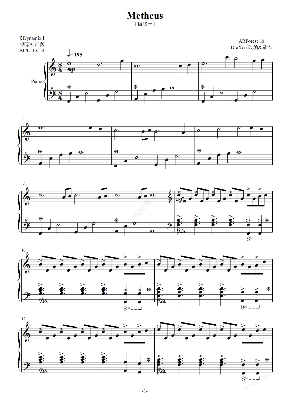 钢琴谱:Metheus(梅修丝,by ARForest in OverRapid & Dynamix)