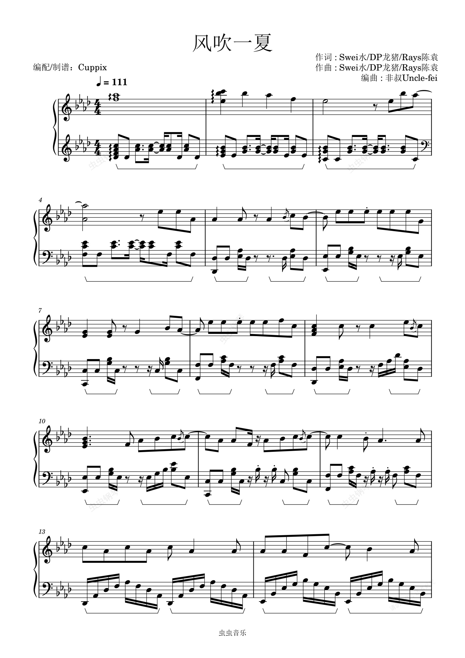 钢琴谱:《风吹一夏》Cuppix编配(DP龙猪,Swei水,Rays陈袁)