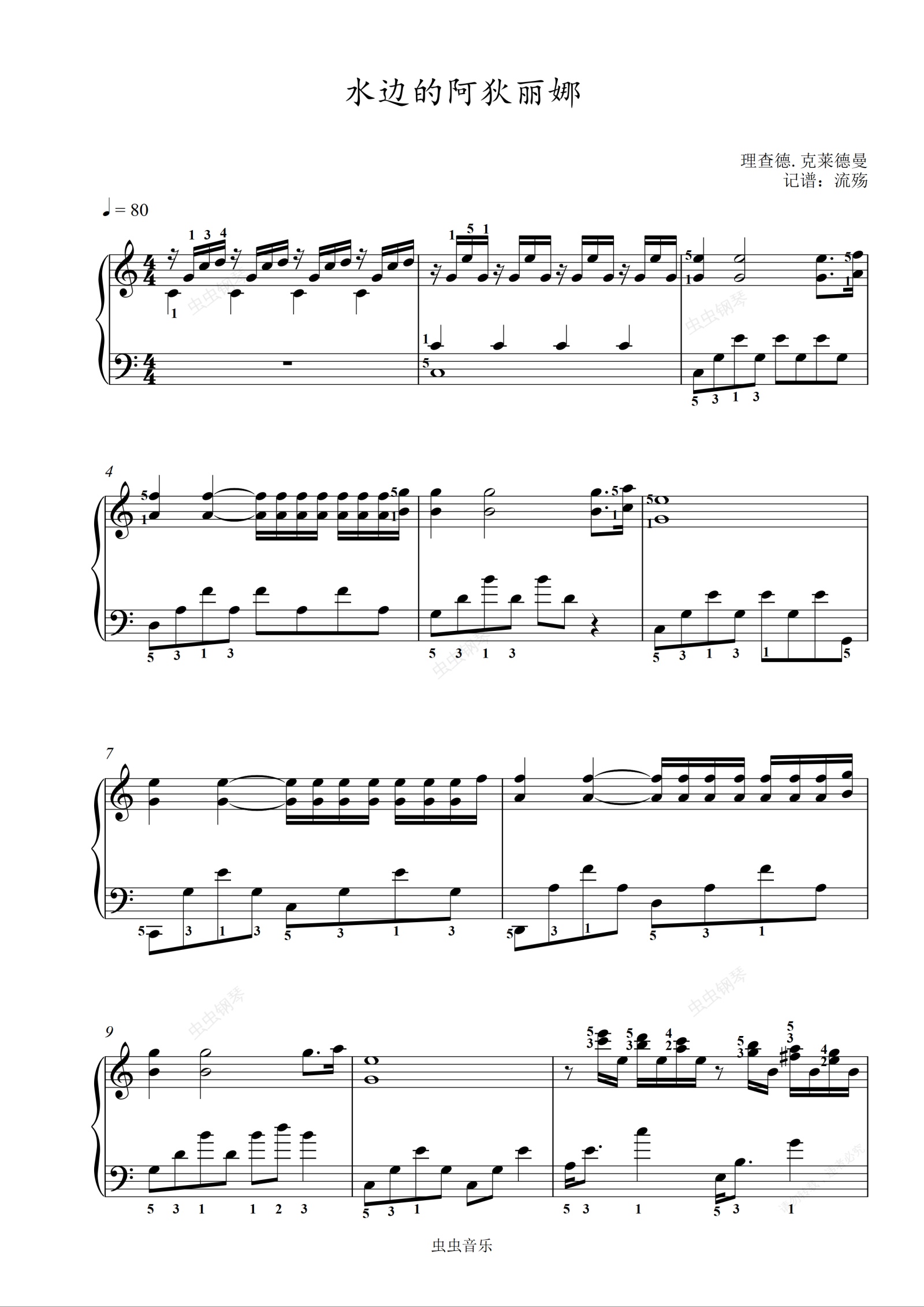 钢琴谱:水边的阿狄丽娜