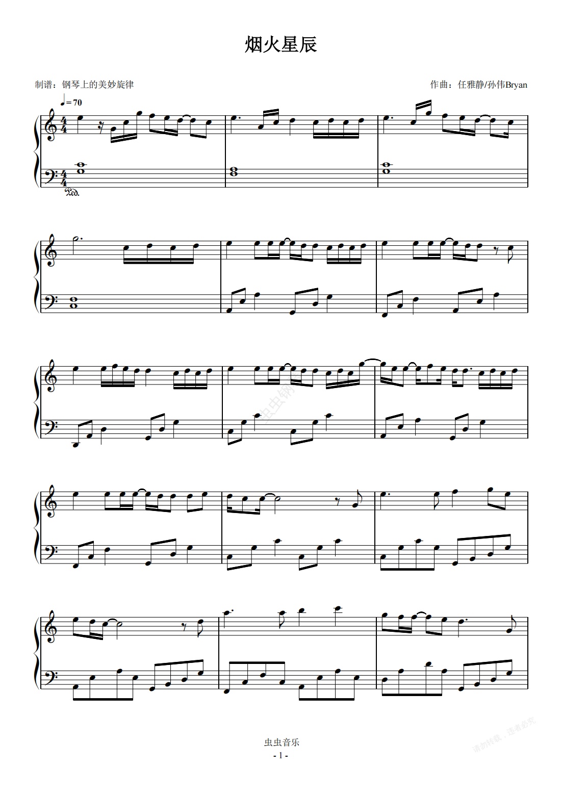 钢琴谱:烟火星辰 C调简易版  你是我的荣耀  刘宇宁
