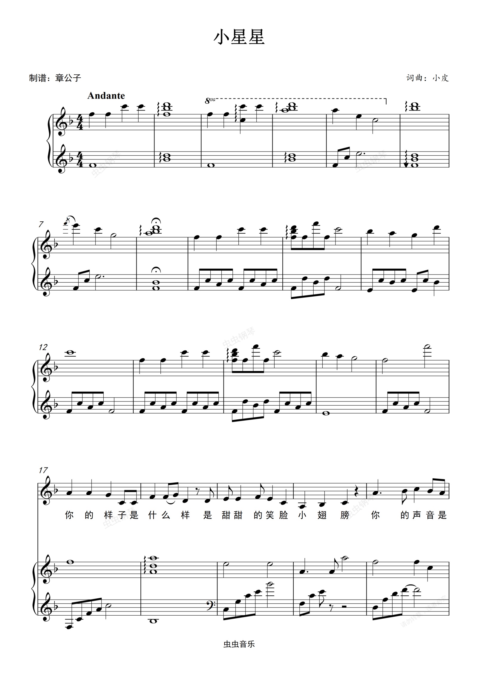 钢琴谱:小星星 - 小皮 完美弹唱(伴奏)谱