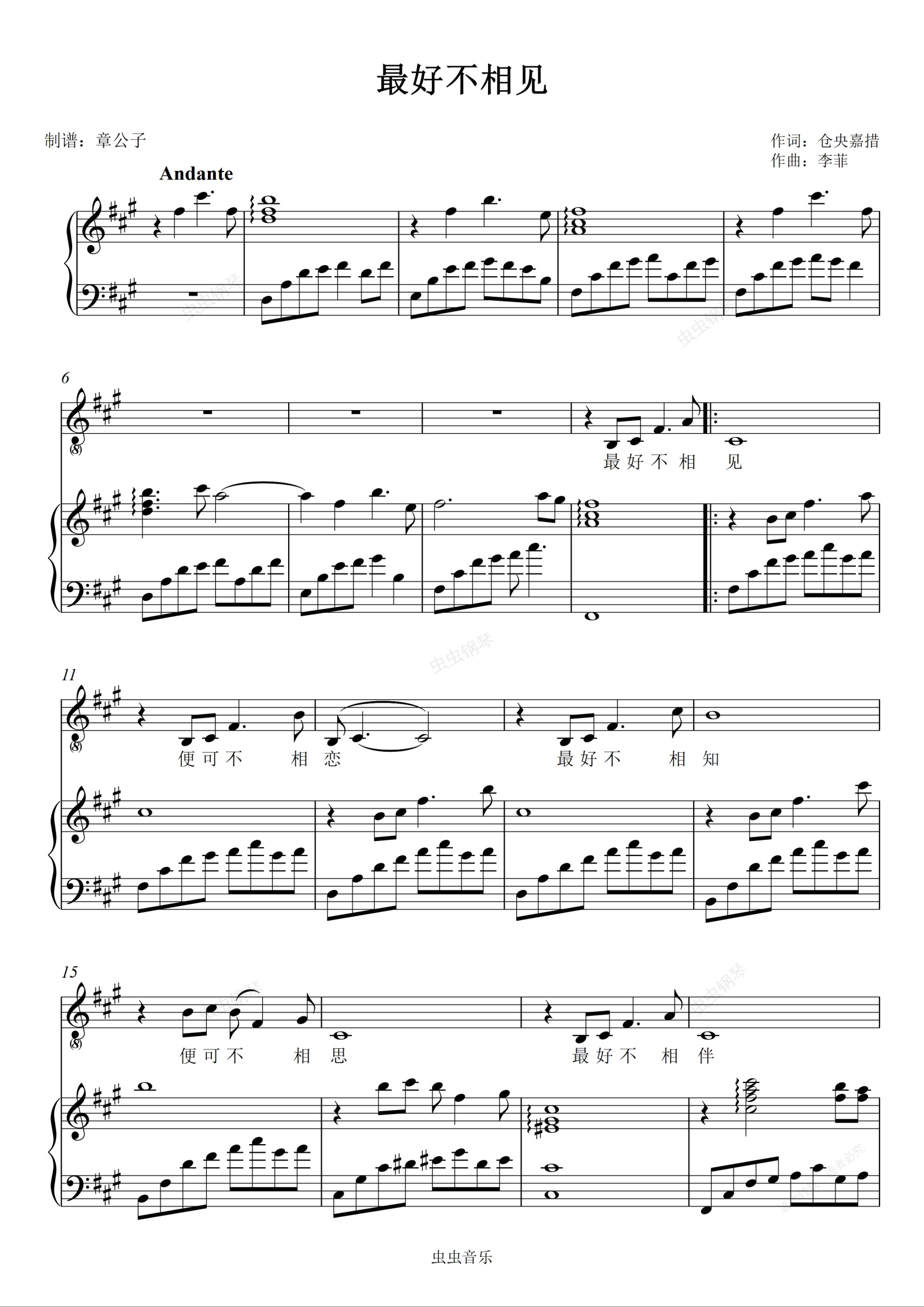 钢琴谱:最好不相见 - 周楠 弹唱(伴奏)谱