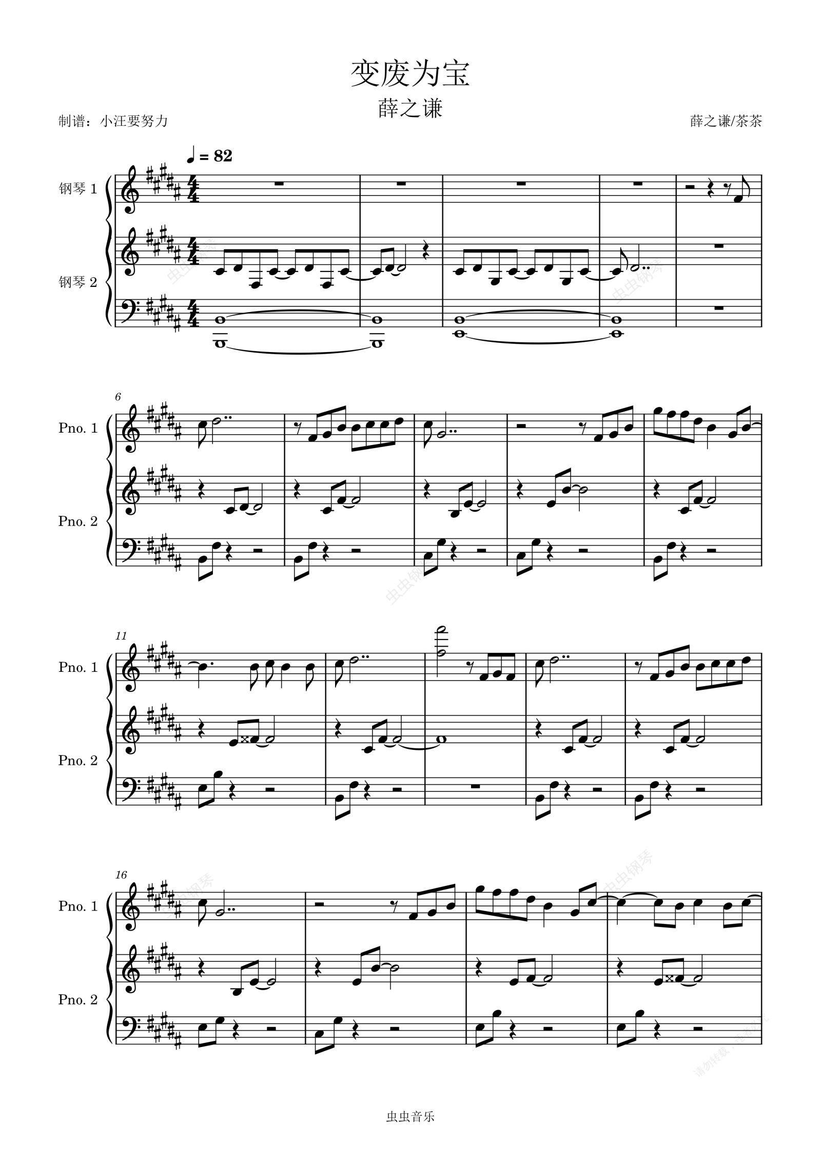 钢琴谱:变废为宝-薛之谦原版B调钢琴谱