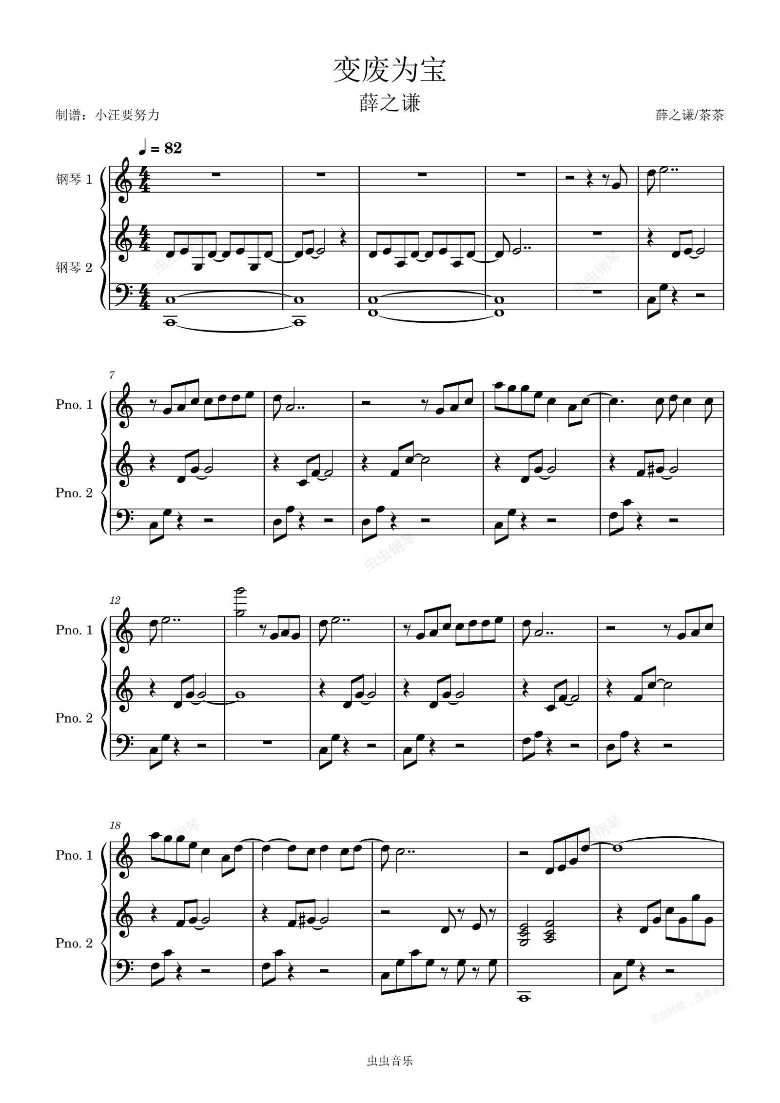 钢琴谱:变废为宝-薛之谦C调钢琴谱