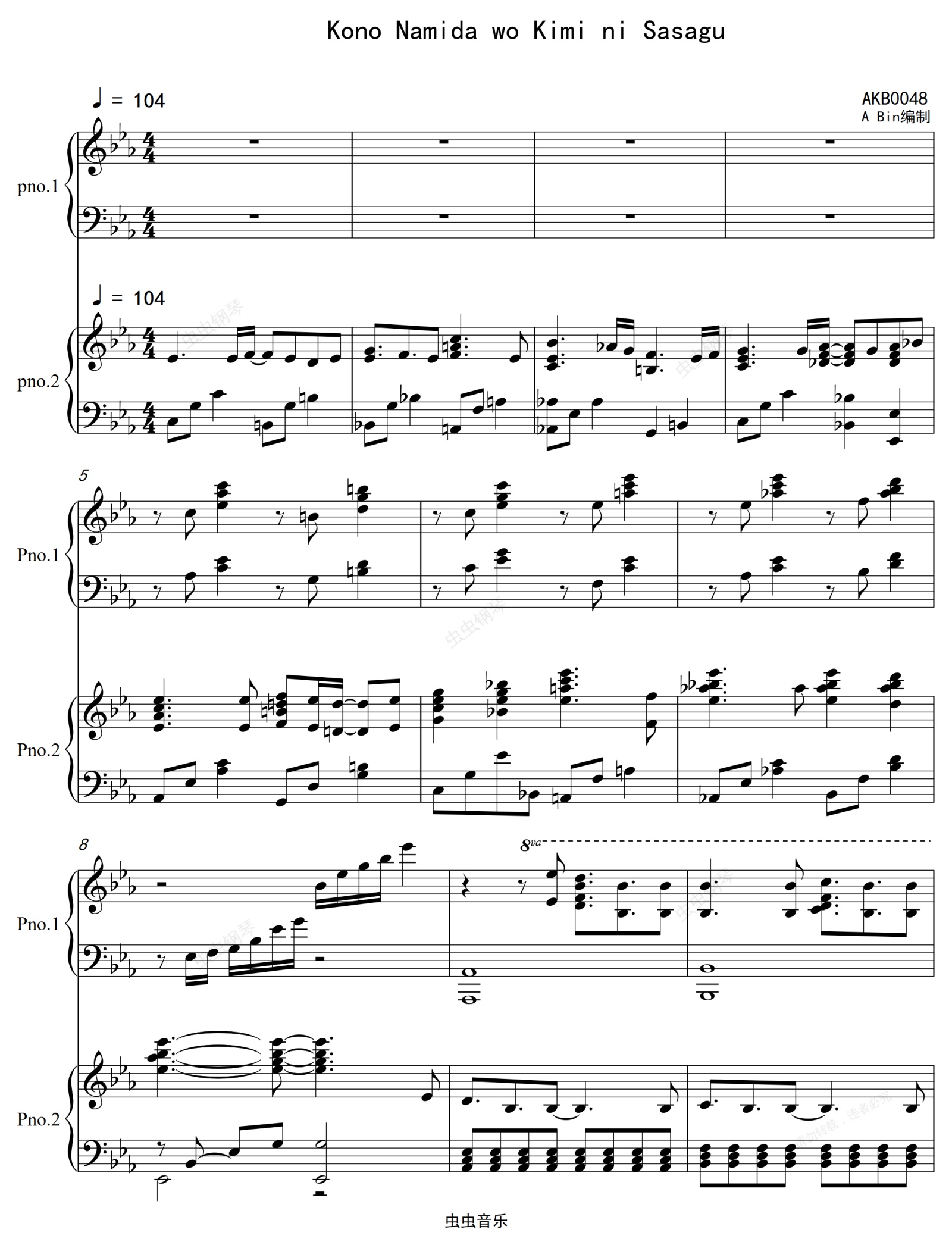 钢琴谱:高燃双钢Kono Namida O Kimi Ni Sasagu