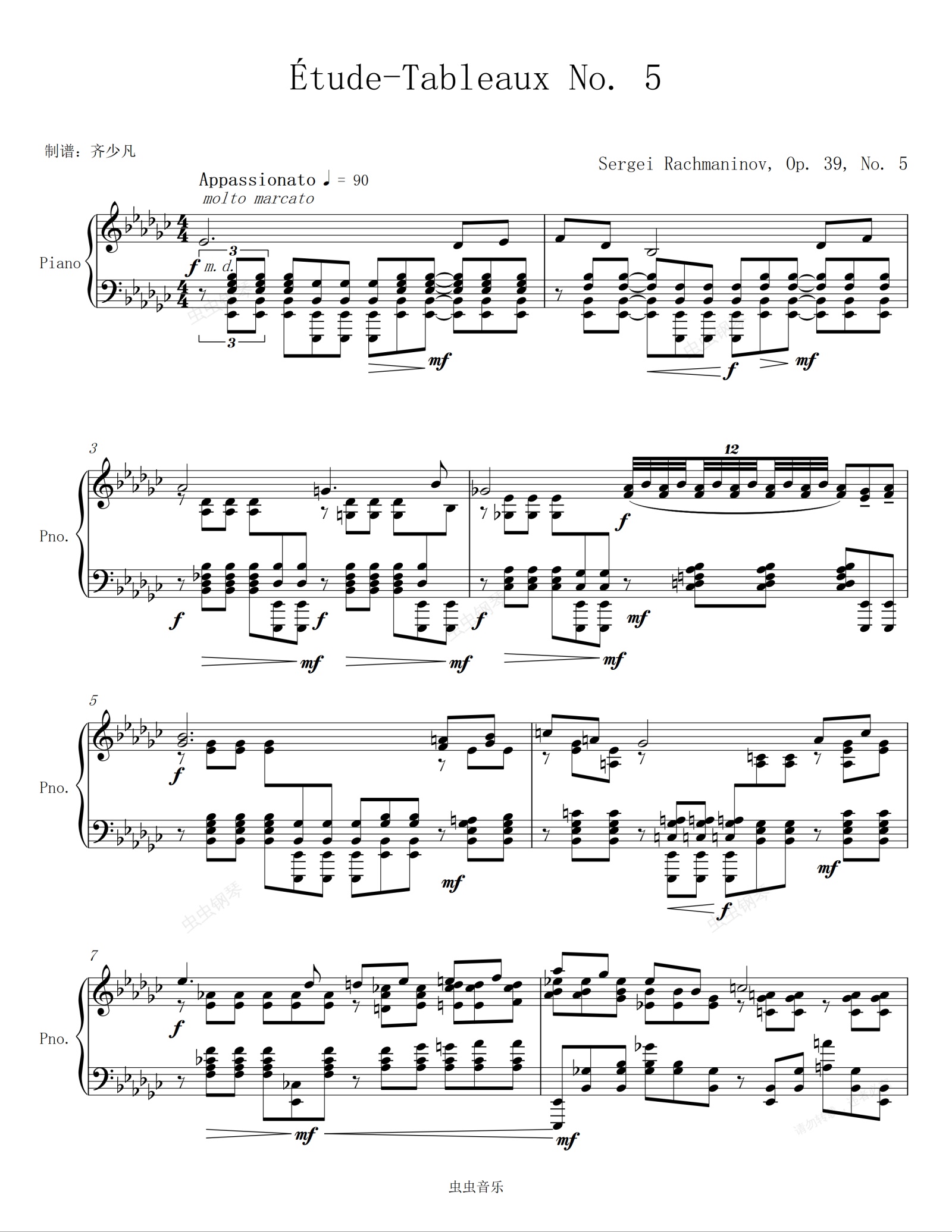 拉赫玛尼诺夫 降e小调音画练习曲Op.39 No.5