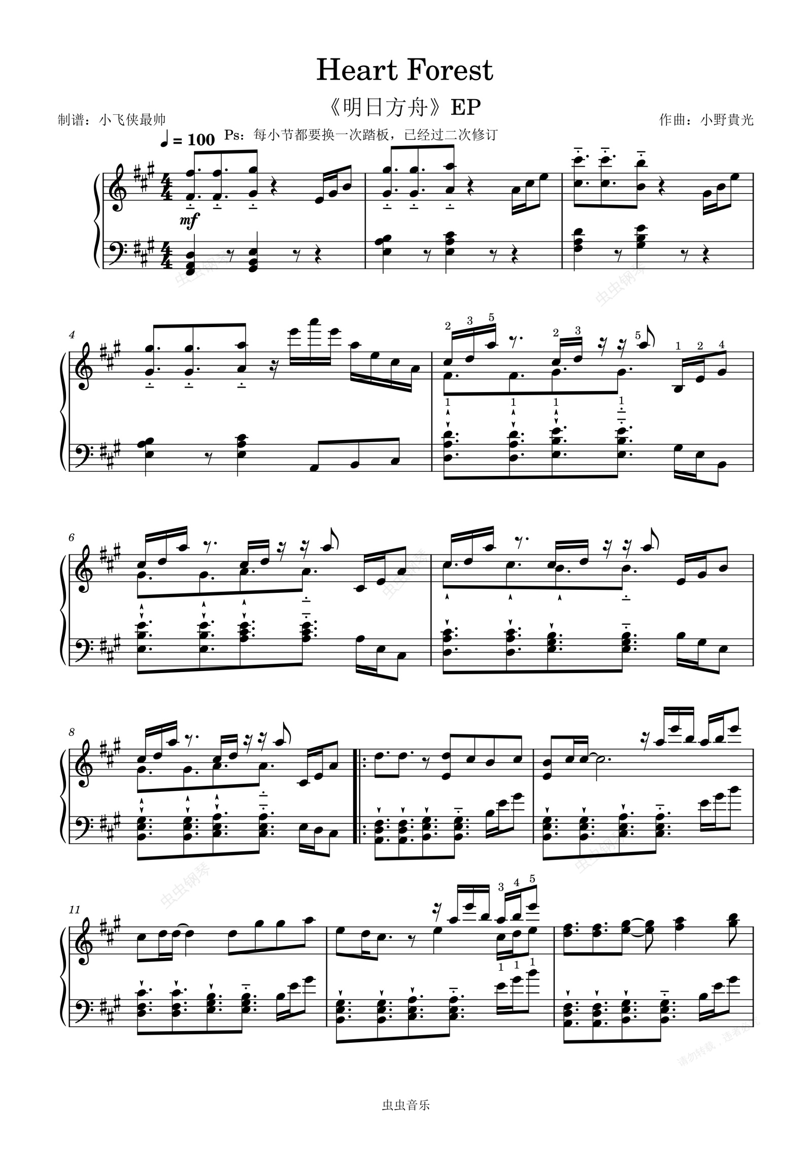 钢琴谱:Heart Forest 《明日方舟》EP