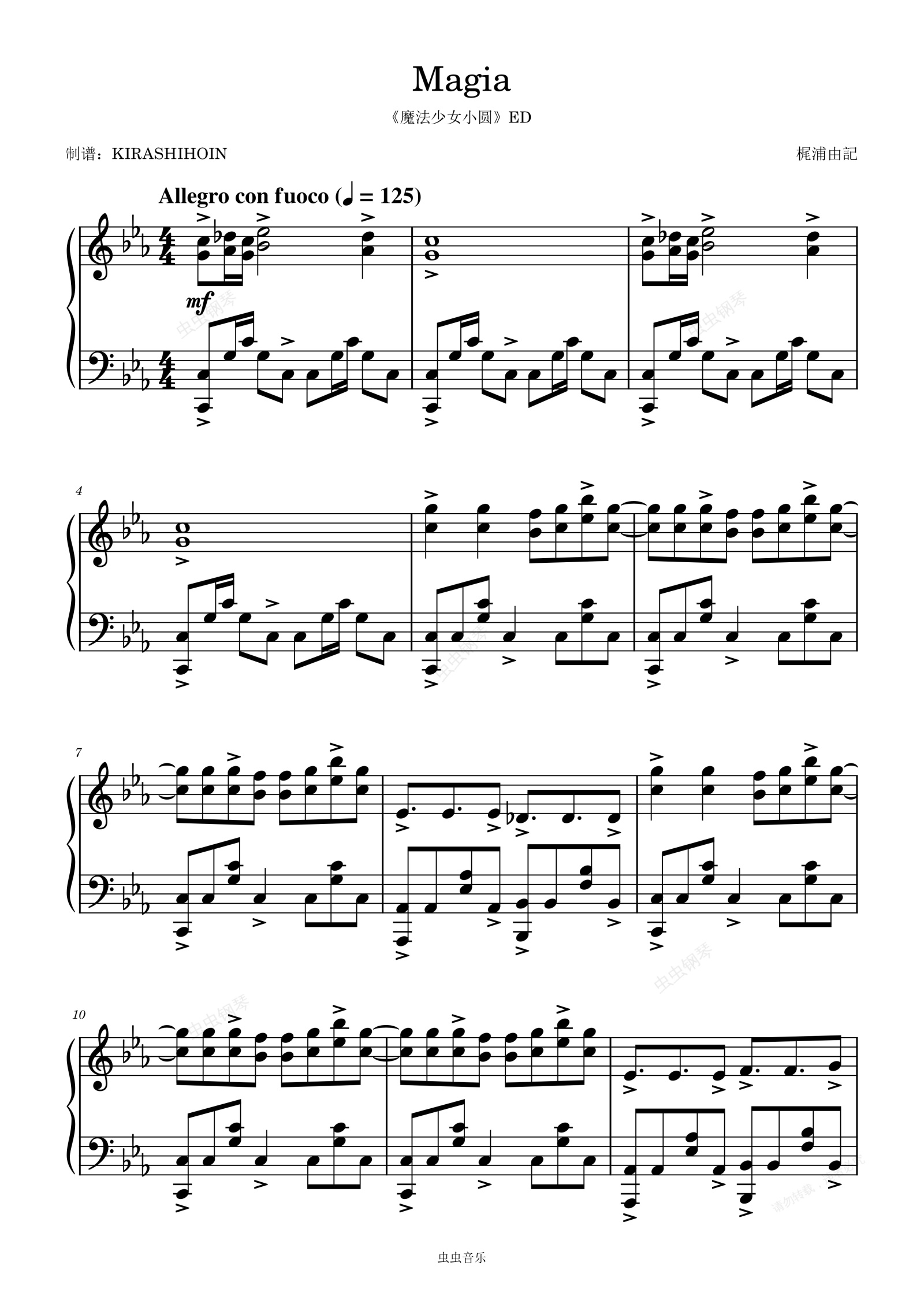 钢琴谱:Magia(《魔法少女小圆》ED/片尾曲)- Kalafina