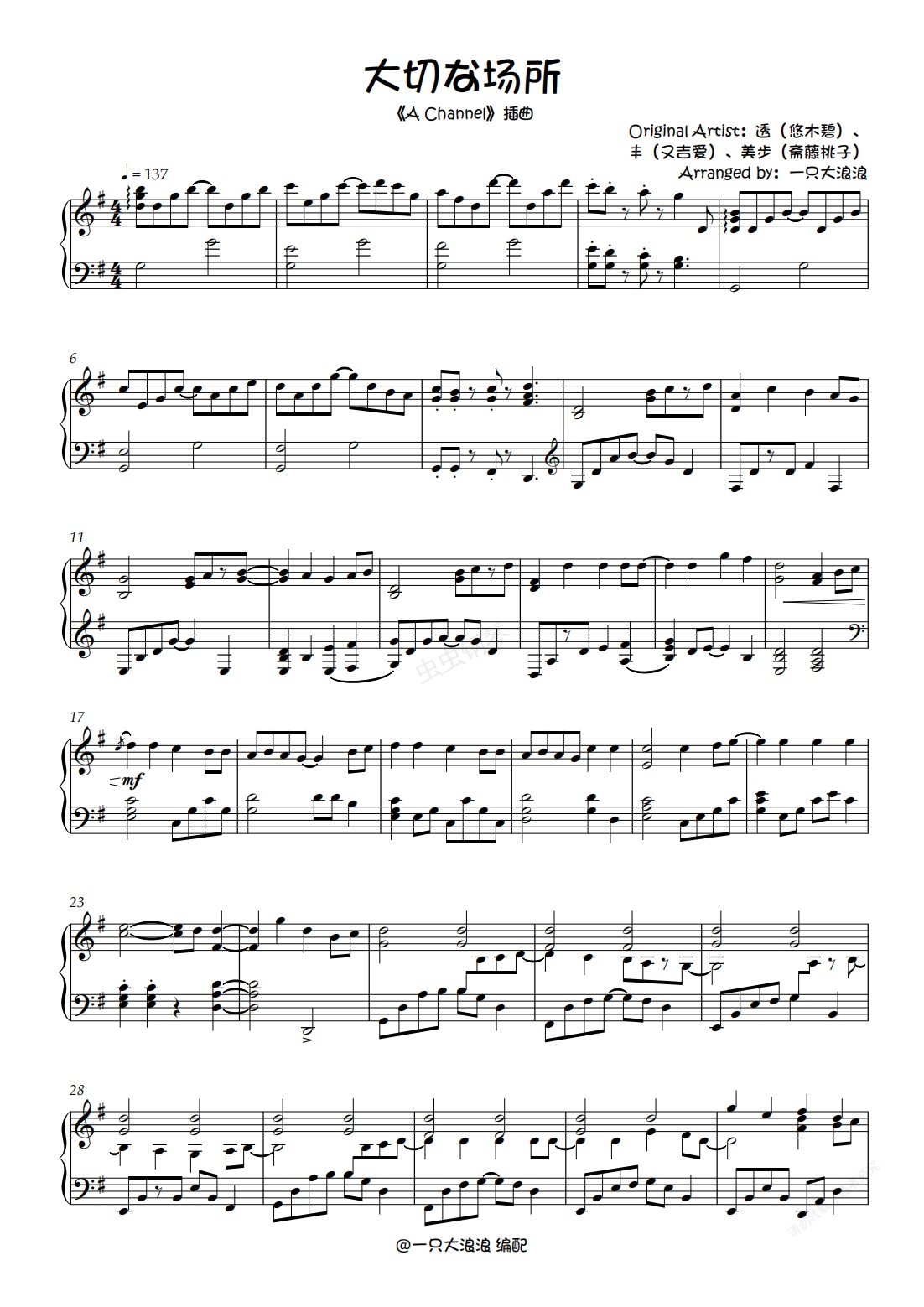 钢琴谱:大切な场所 《A Channel》插曲 钢琴独奏版(Short Ver.)