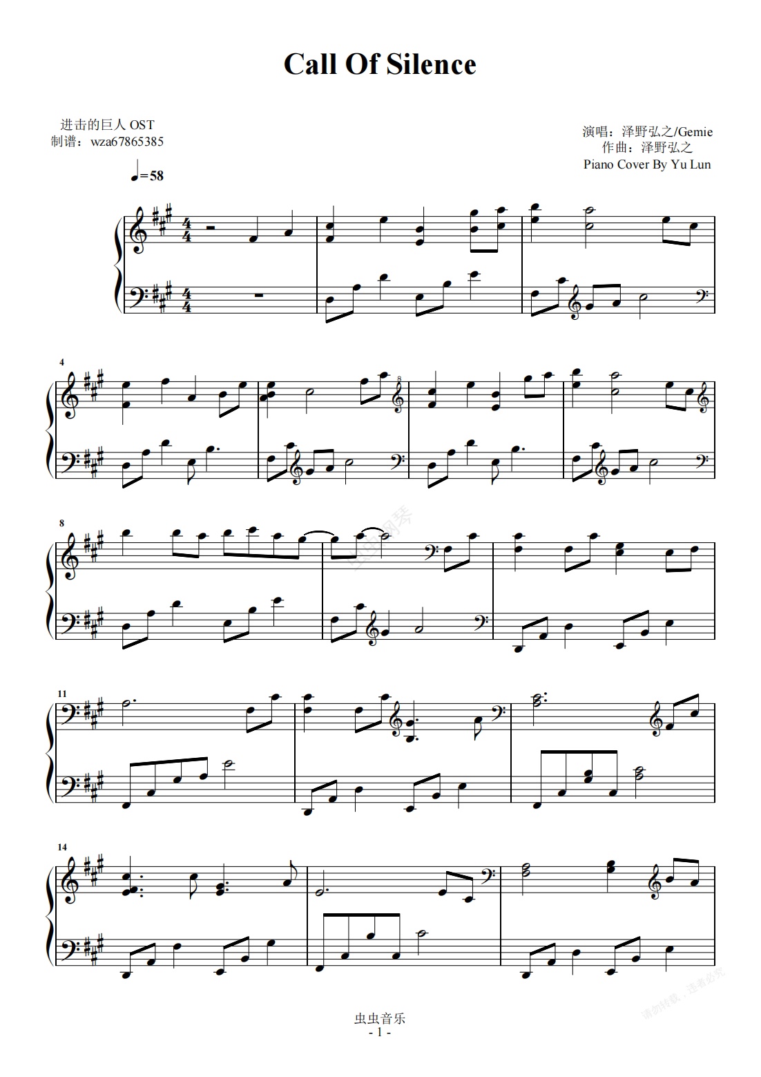 钢琴谱:Call Of Silence