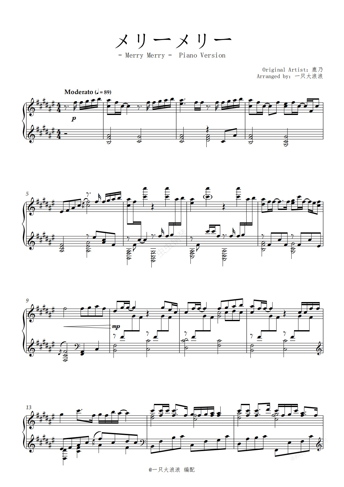 钢琴谱:メリーメリー 钢琴独奏版(重排版)