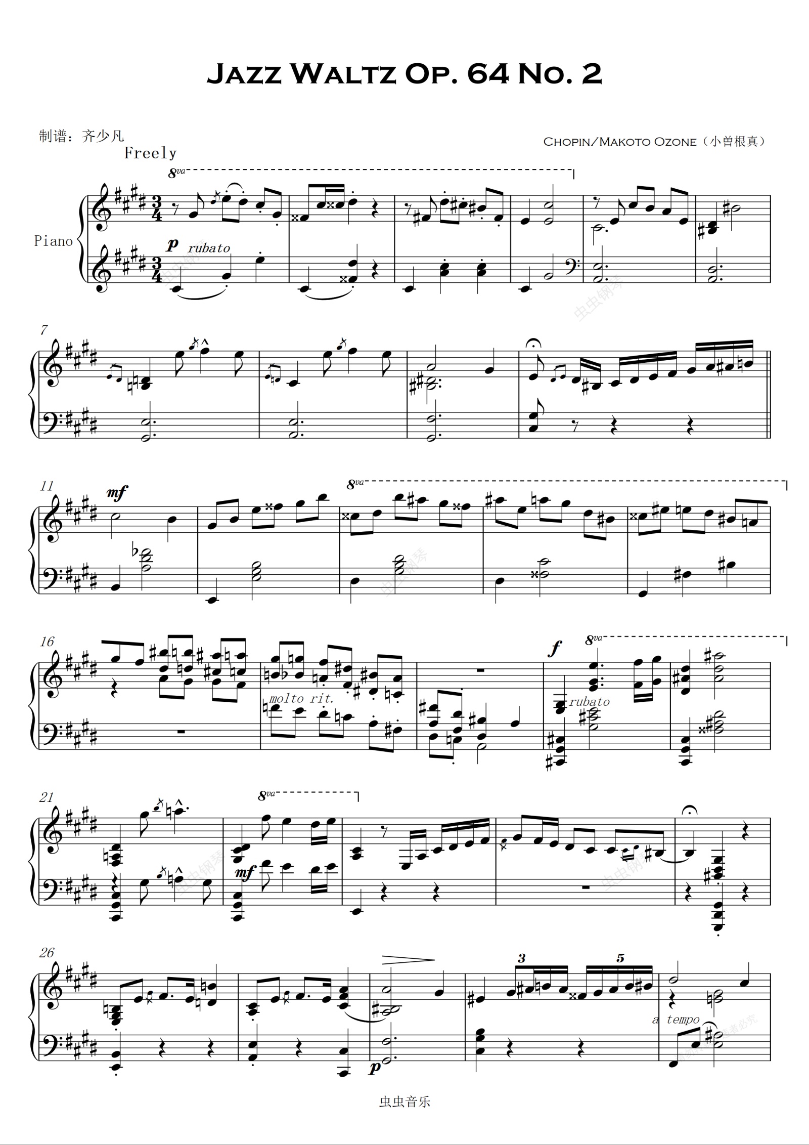 【爵士】肖邦升C小调圆舞曲Op64 No.2 Chopin -Waltz No.7