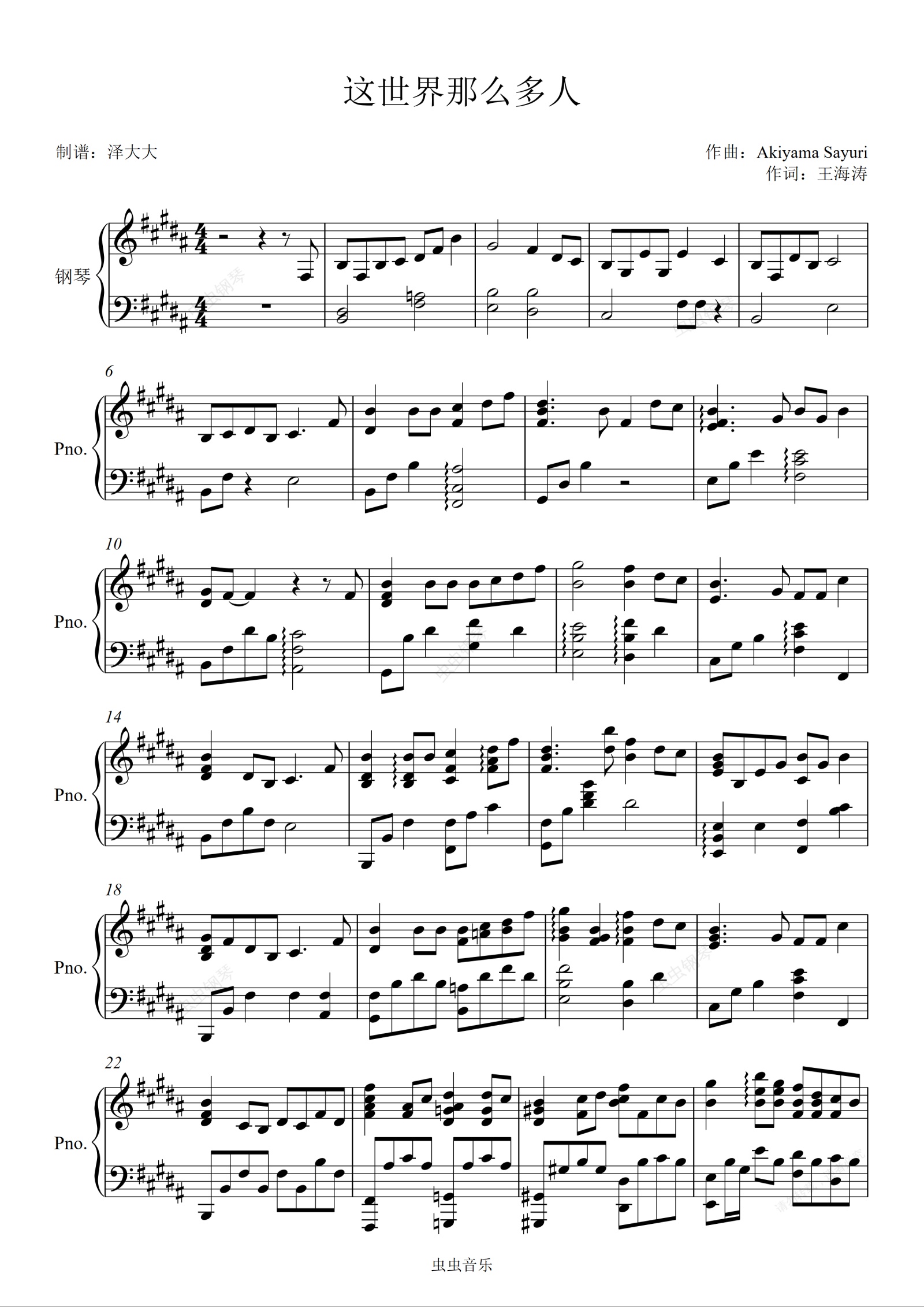 钢琴谱:这世界那么多人【罗曼耶卓】泽大大扒