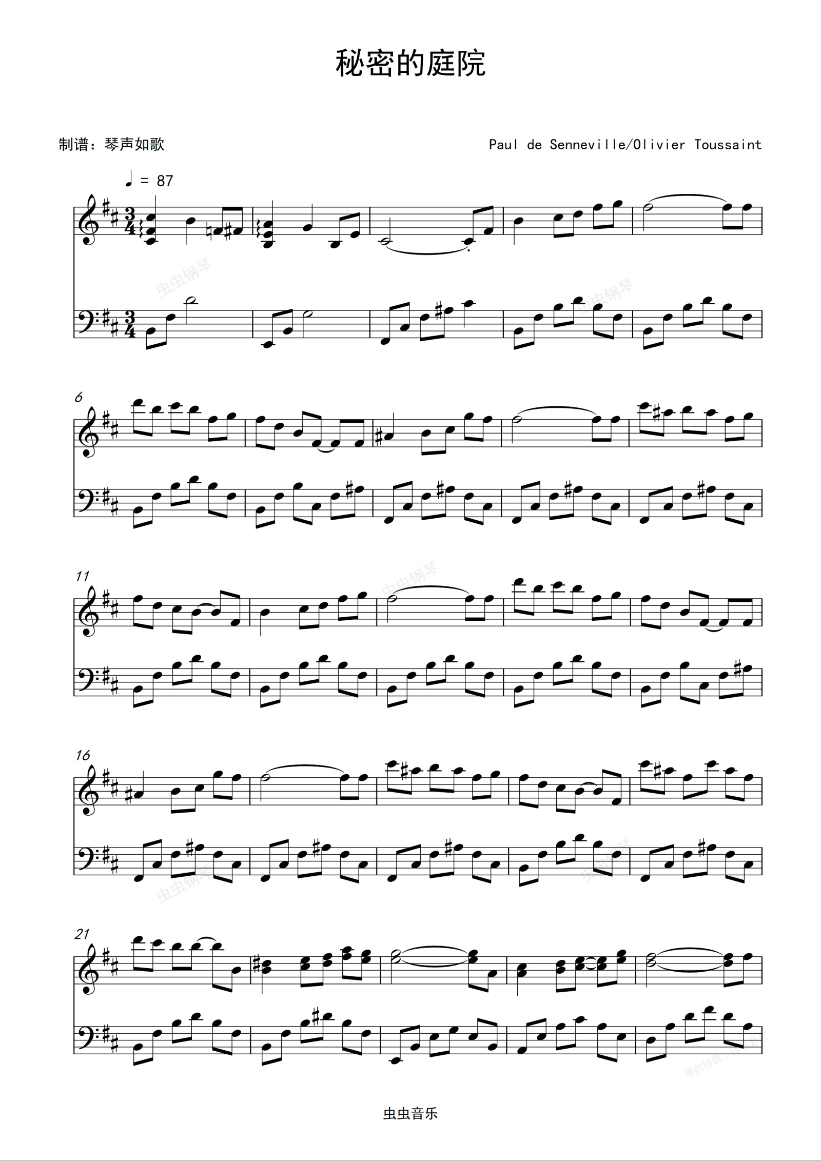 钢琴谱:理查德.克莱德曼-秘密的庭院