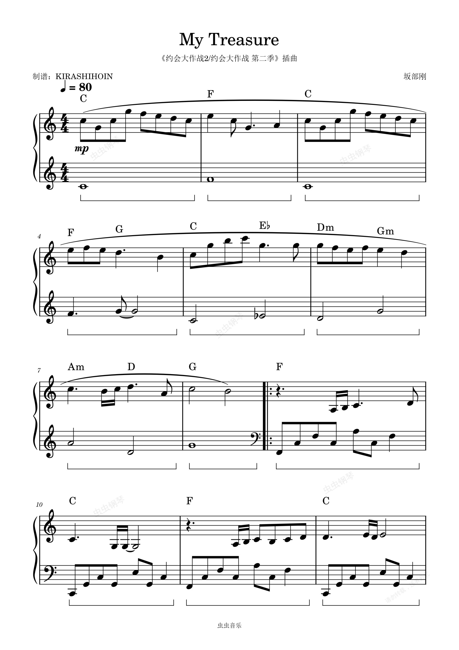 钢琴谱:My Treasure(《约会大作战2/约会大作战 第二季》插曲)- 茅原实里