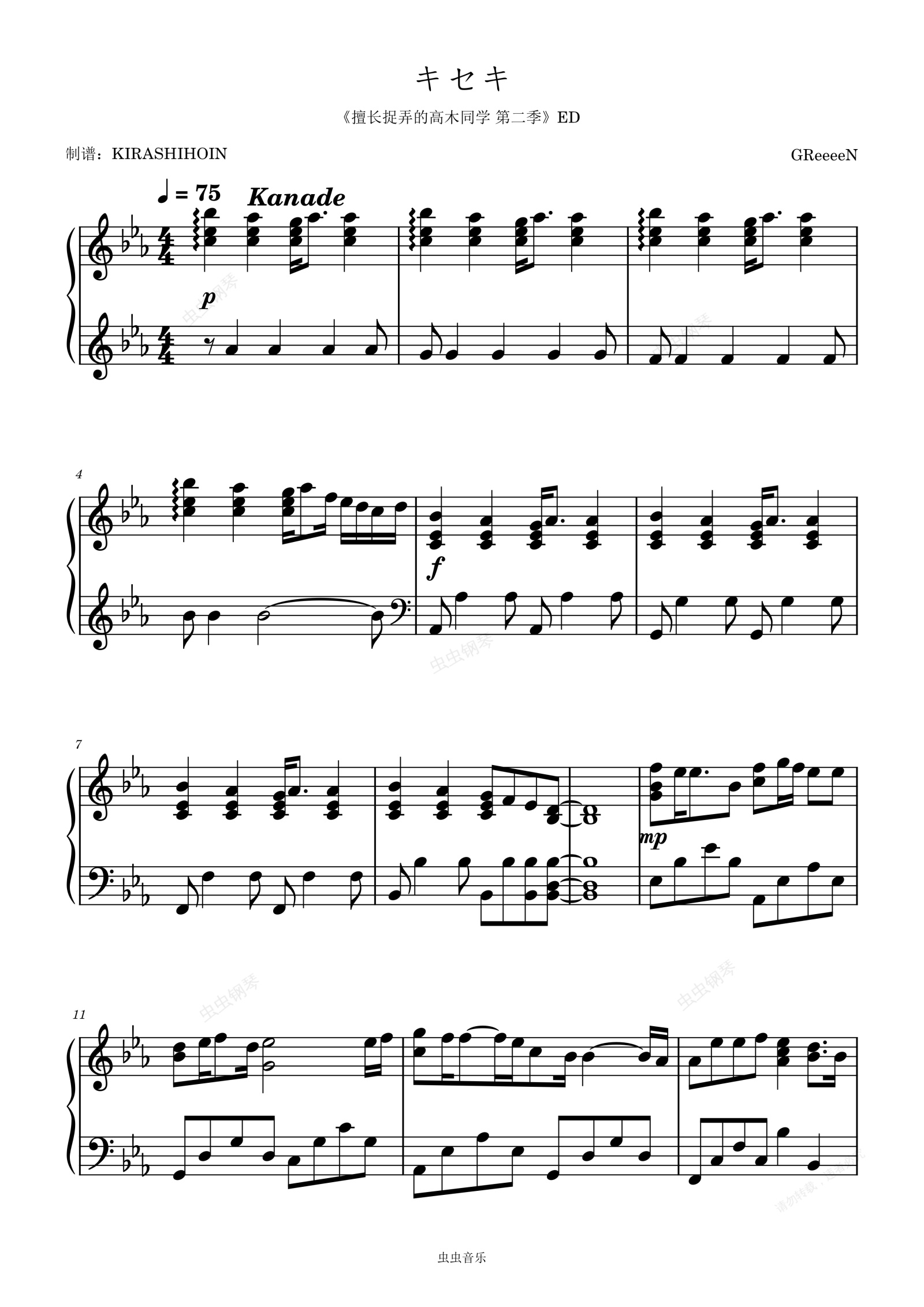 钢琴谱:キセキ/奇迹(《擅长捉弄的高木同学 第二季》ED/片尾曲)- 高桥李依
