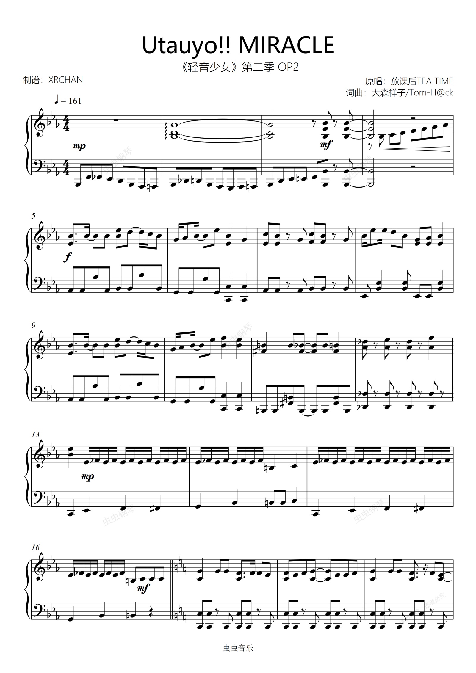 钢琴谱:Utauyo!! MIRACLE 《轻音少女》第二季 OP2 初级版