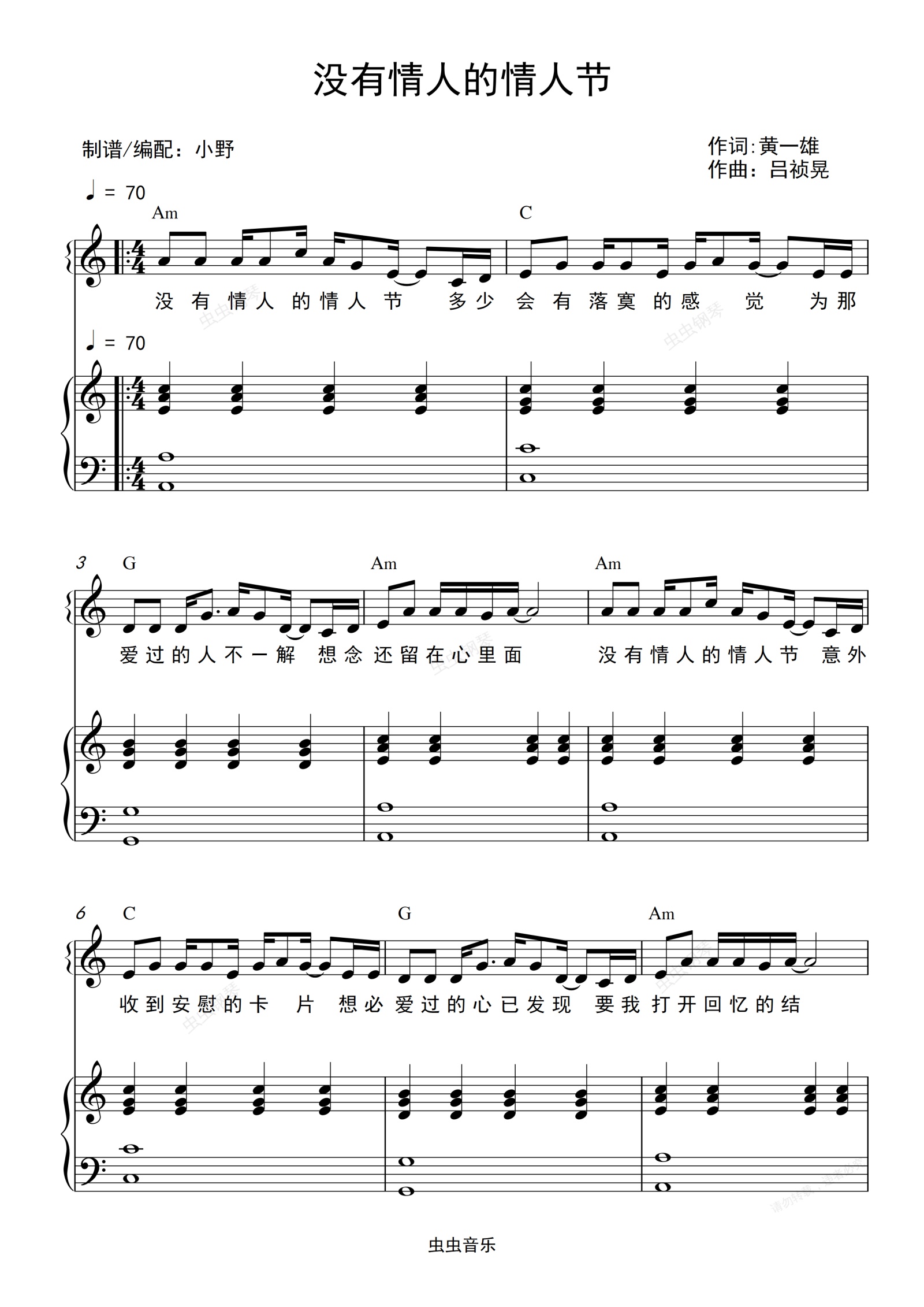 钢琴谱:没有情人的情人节(和弦弹唱版)