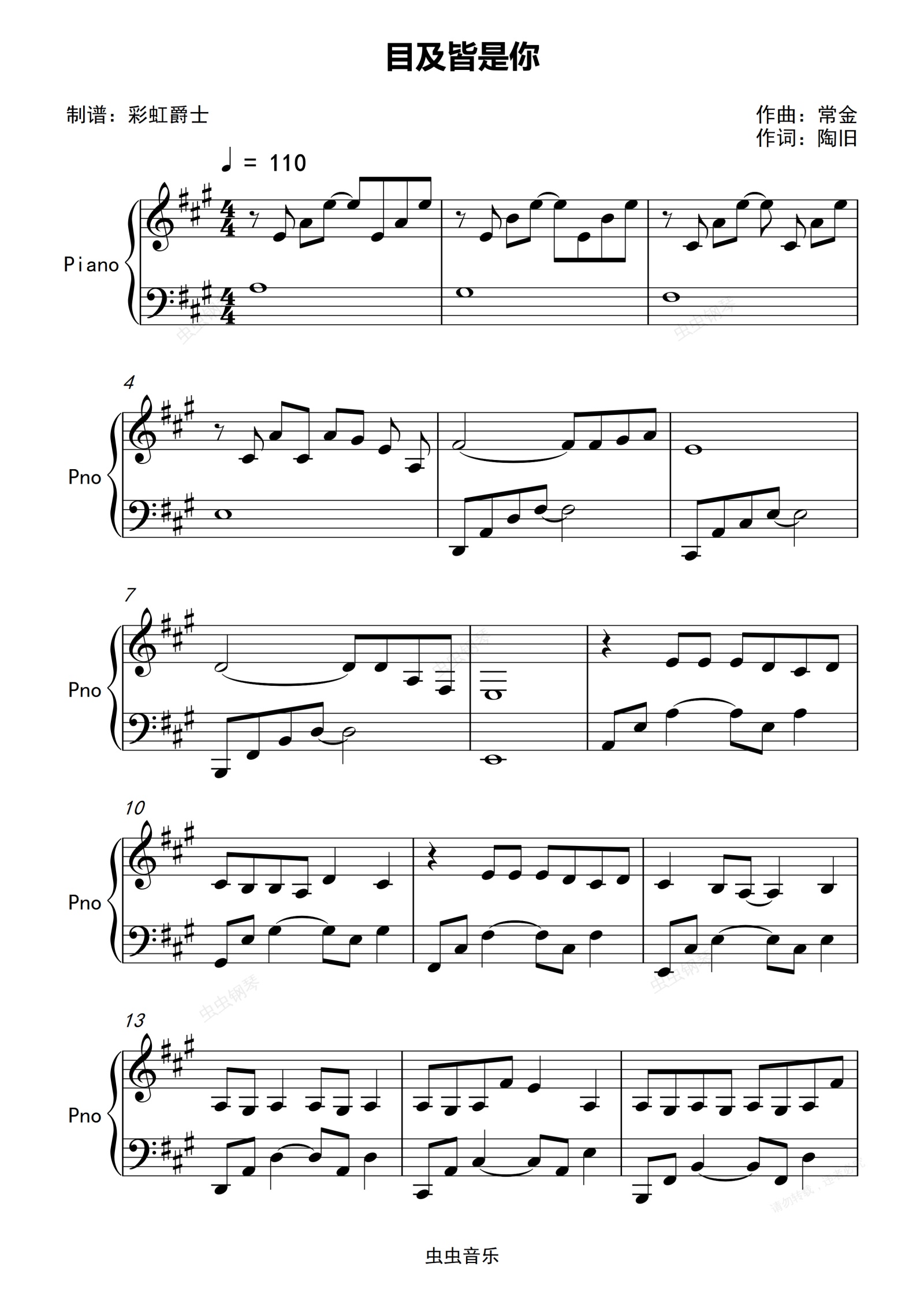 钢琴谱:目及皆是你 简单版 小蓝背心