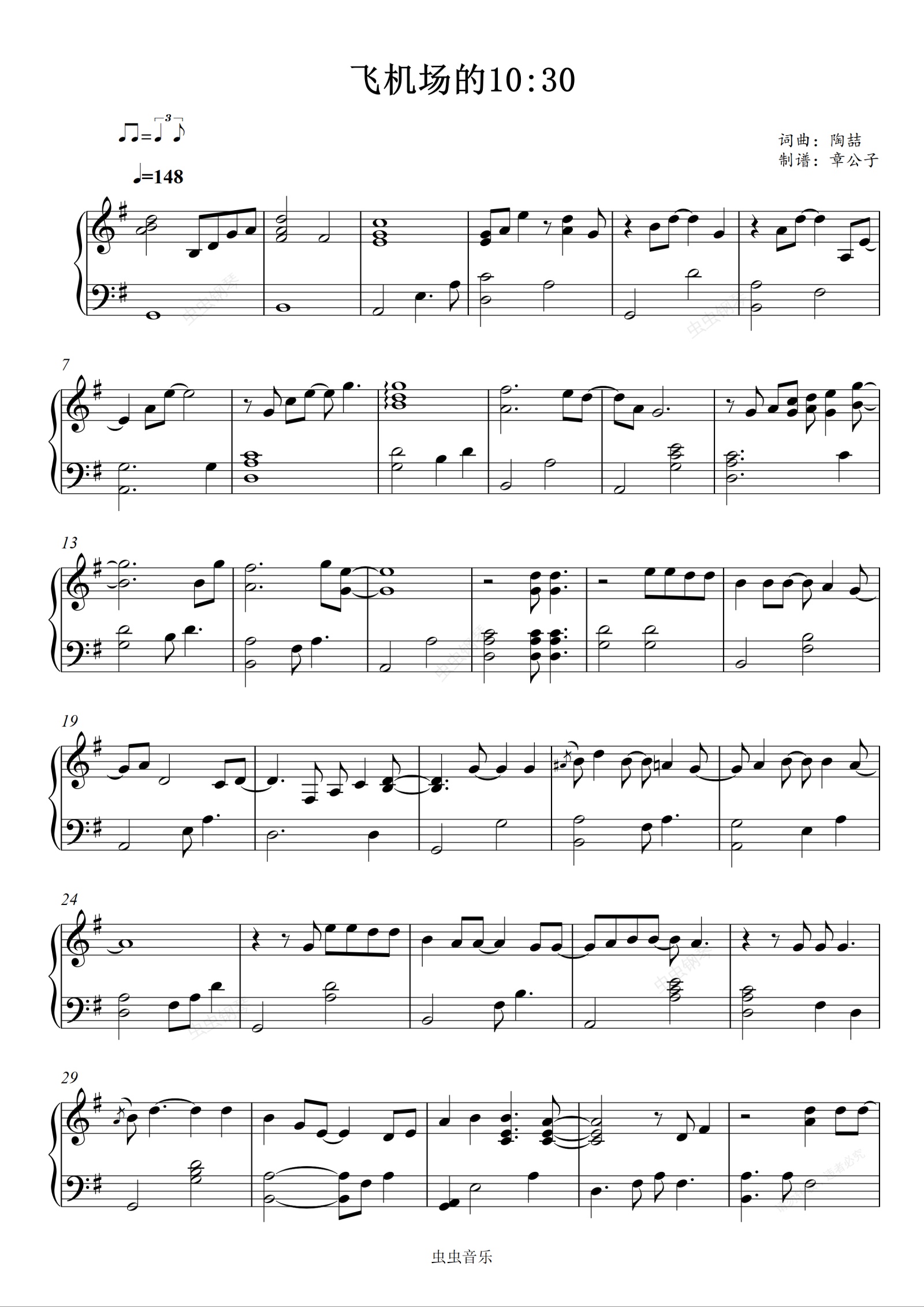 钢琴谱:《飞机场的10:30》飞机场的十点半(陶喆) 钢琴心情101 独奏(演奏)谱