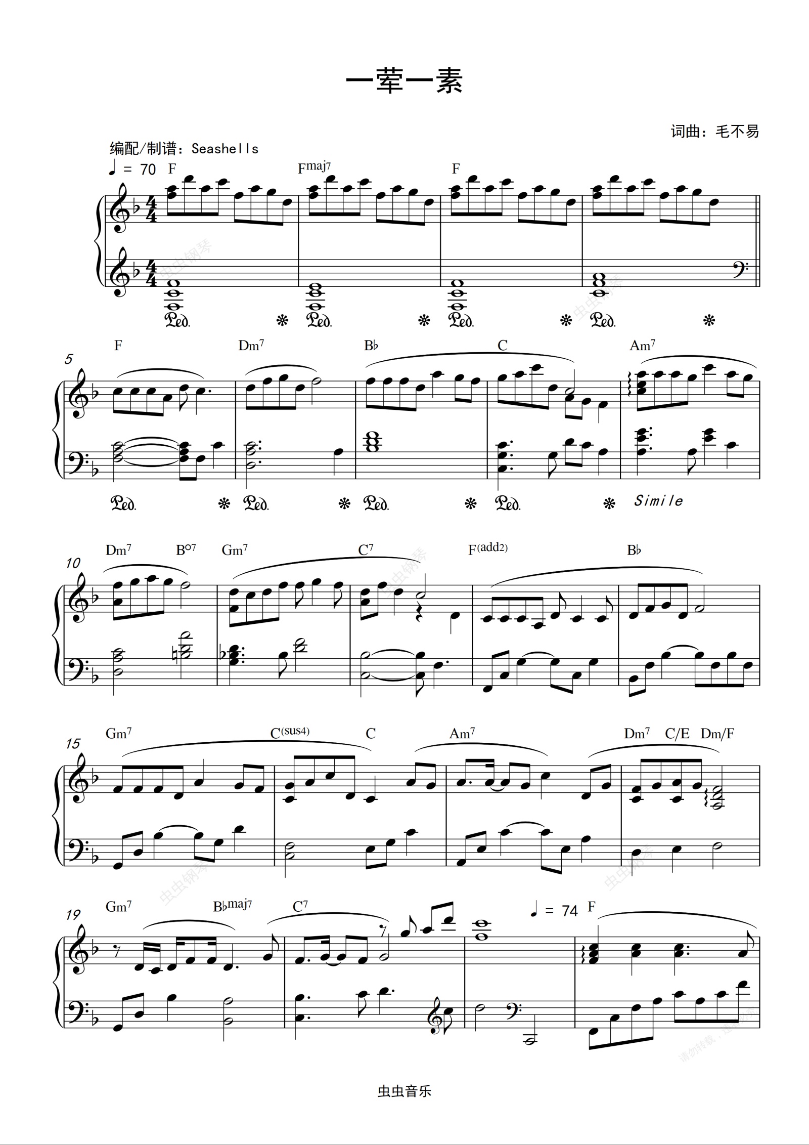 钢琴谱:毛不易-《一荤一素》精编钢琴独奏