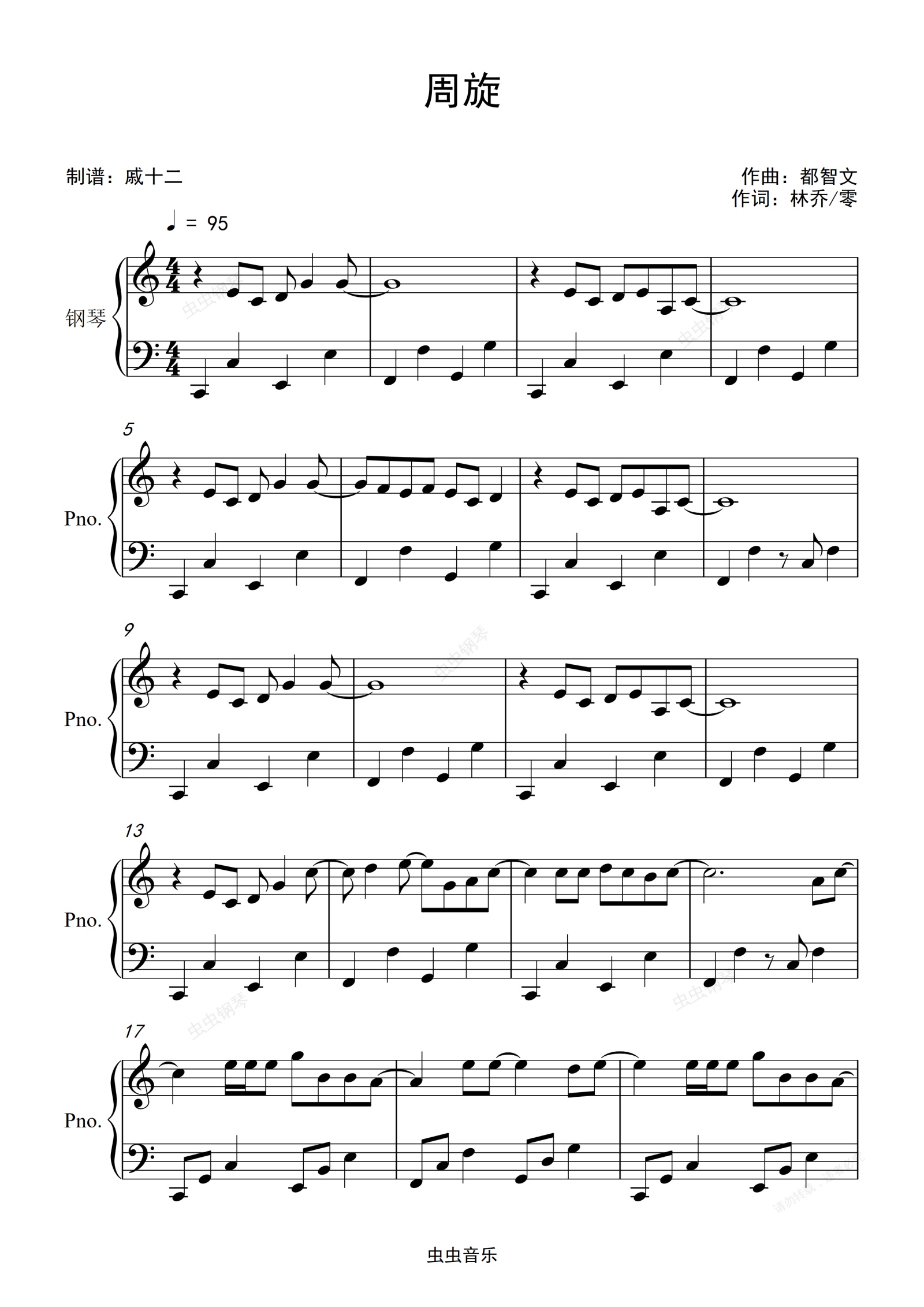 钢琴谱:周旋 《你是我的城池营垒》电视剧插曲-C调简单版
