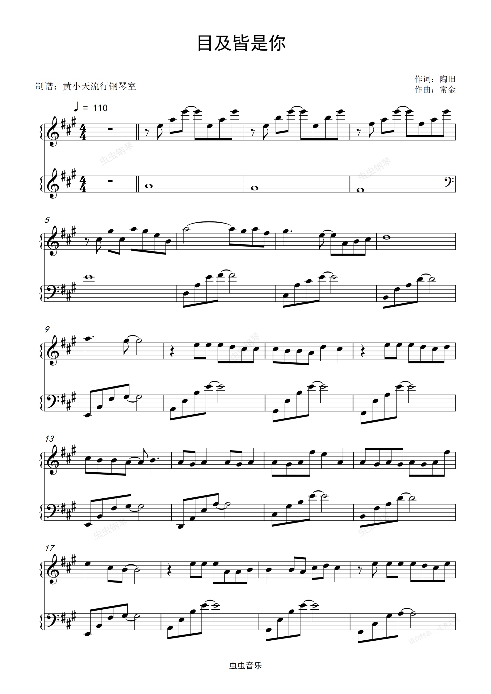 钢琴谱:小蓝背心《目及皆是你》 原调原版和弦易弹好听版本