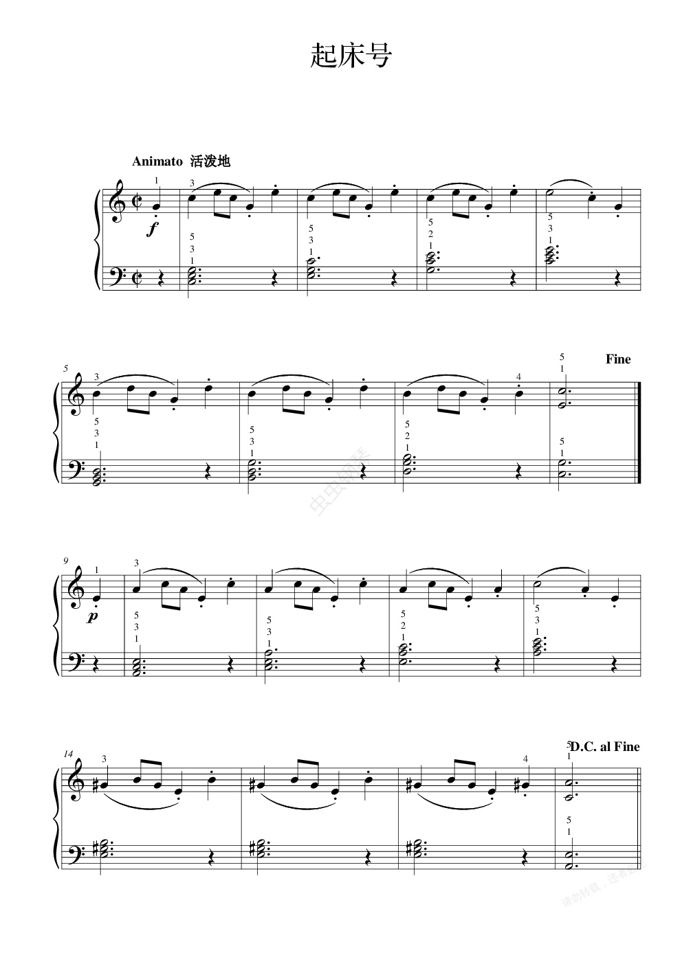 钢琴谱:起床号
