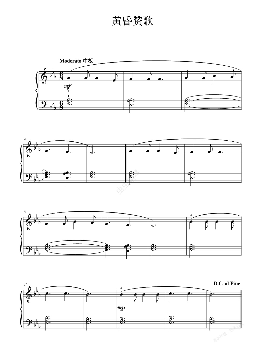 钢琴谱:黄昏赞歌