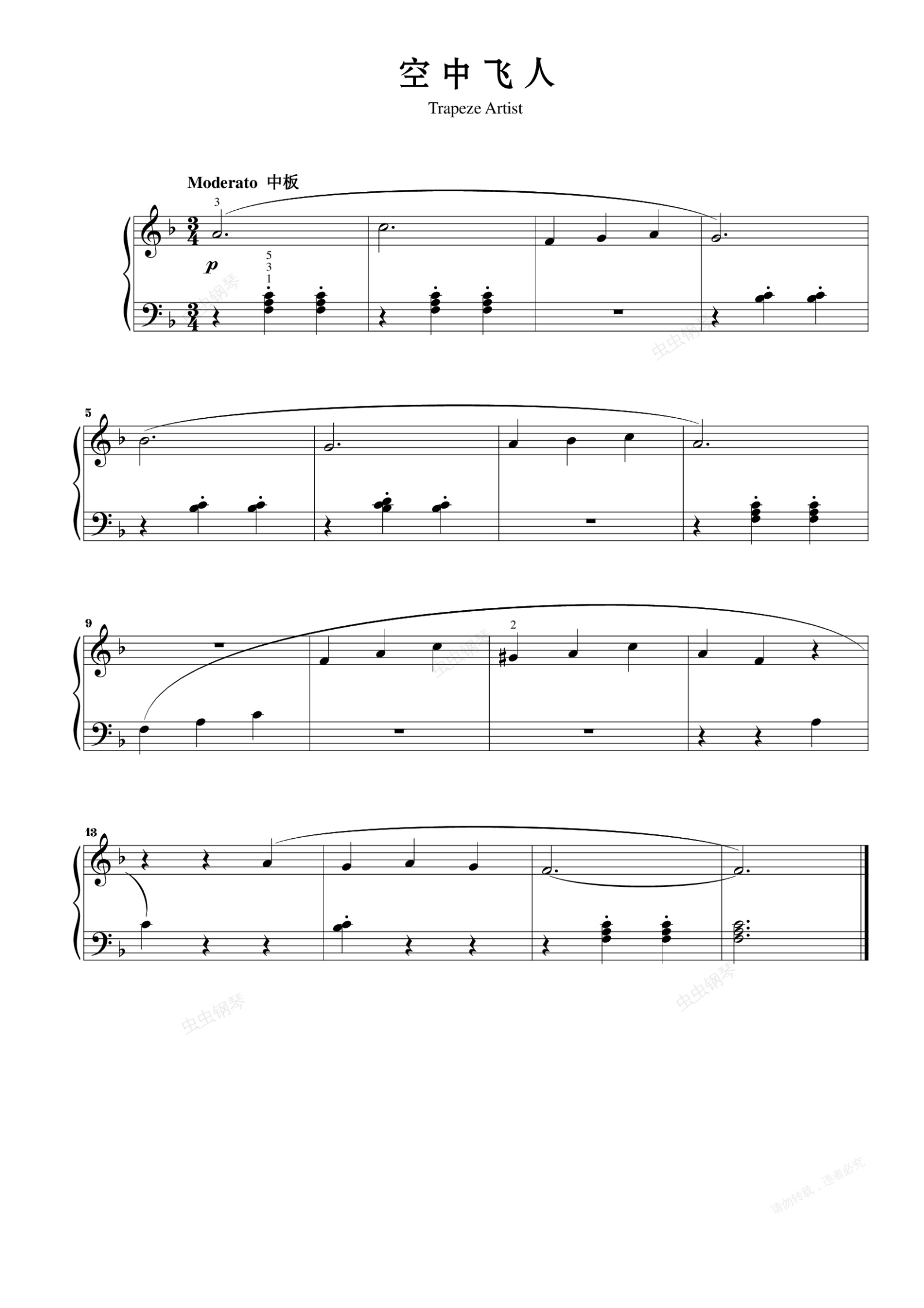 钢琴谱:空中飞人