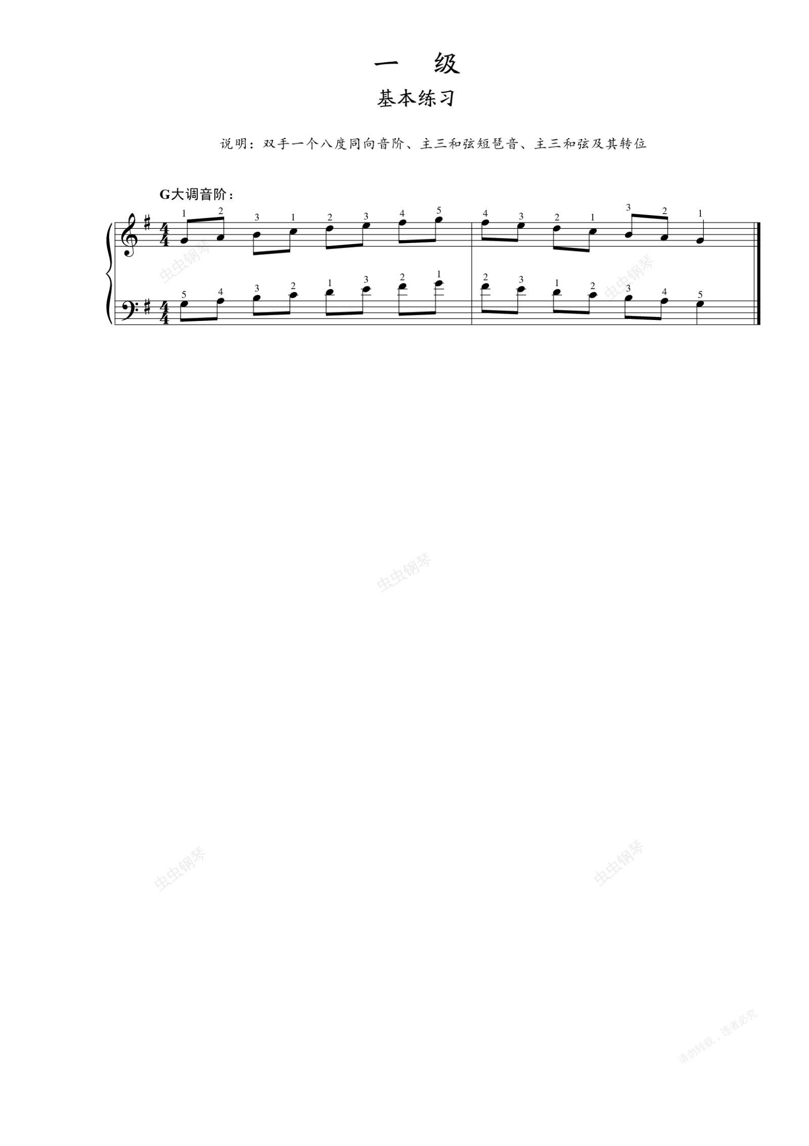 钢琴谱:第一级 基本练习 G大调音阶