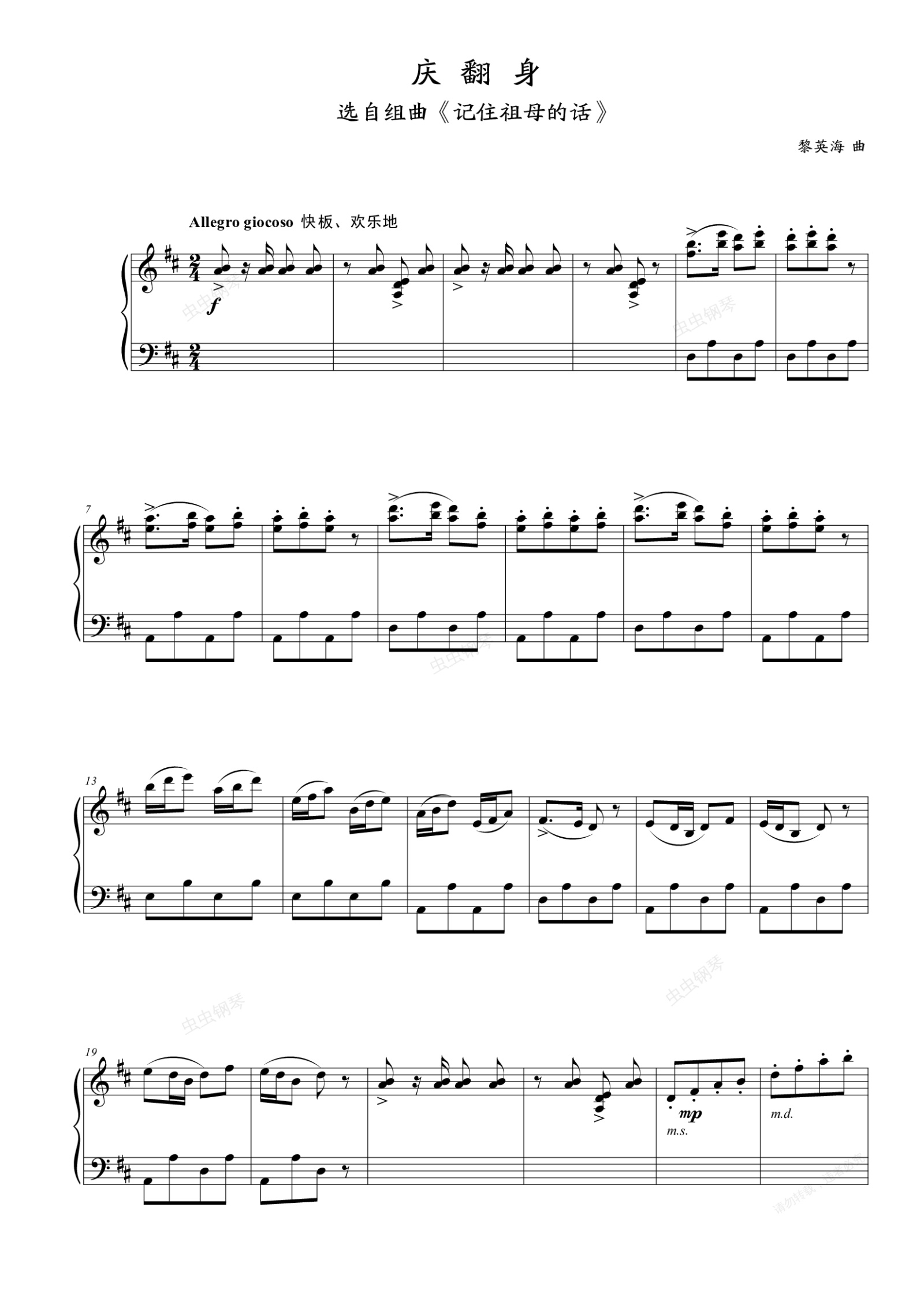 钢琴谱:第五级 庆翻身(选自组曲《记住祖母的话》)