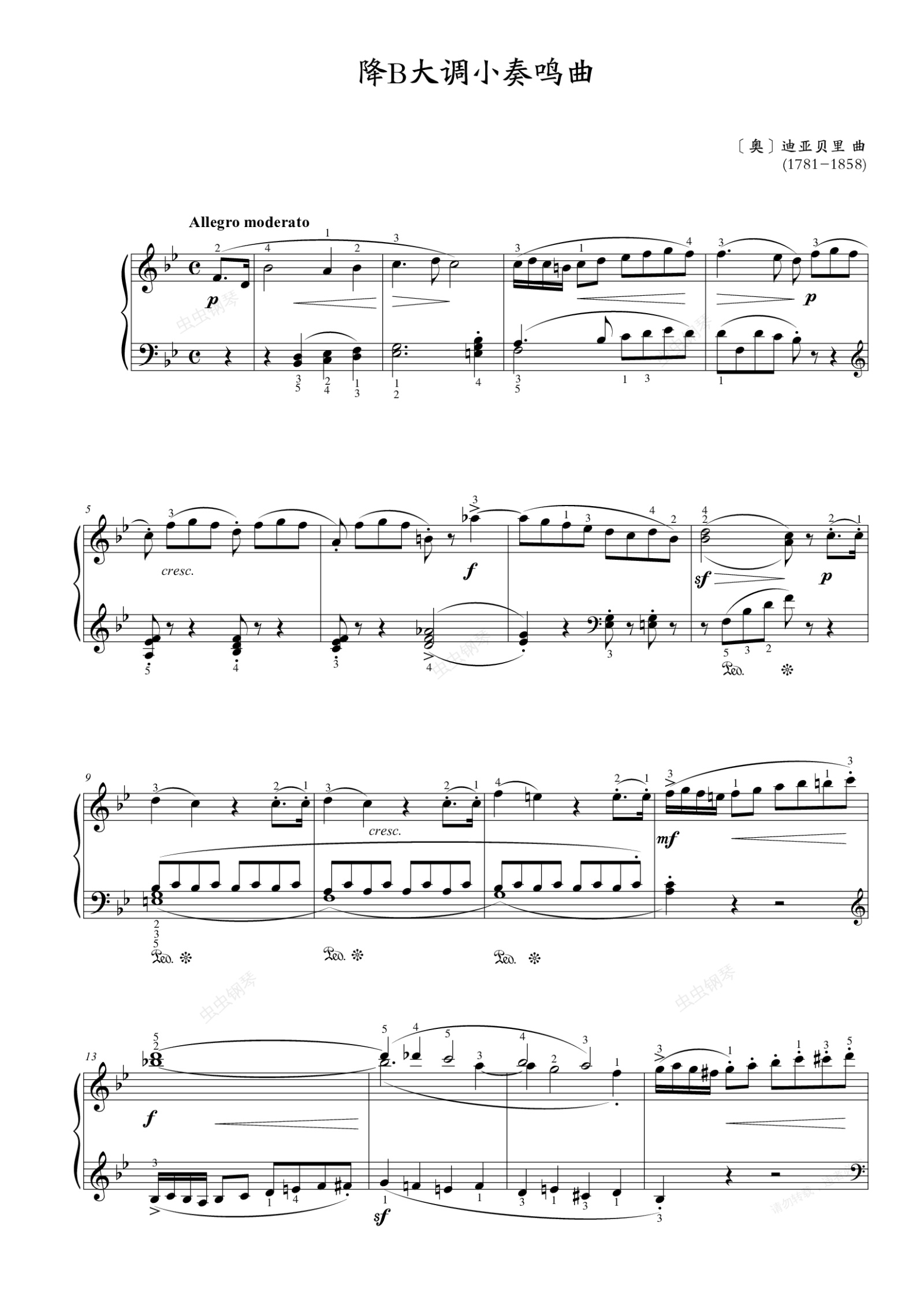 钢琴谱:第五级 降B大调小奏鸣曲(第一乐章)