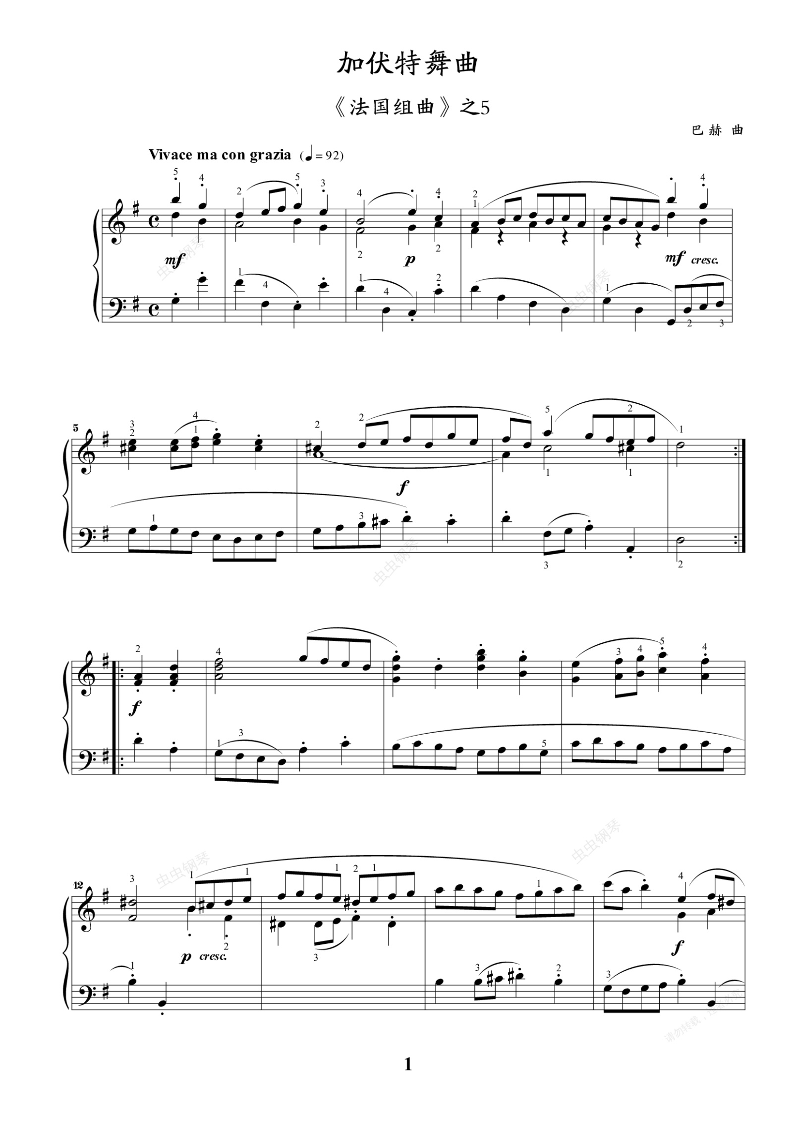 钢琴谱:第五级 加伏特舞曲(《法国组曲》之5)