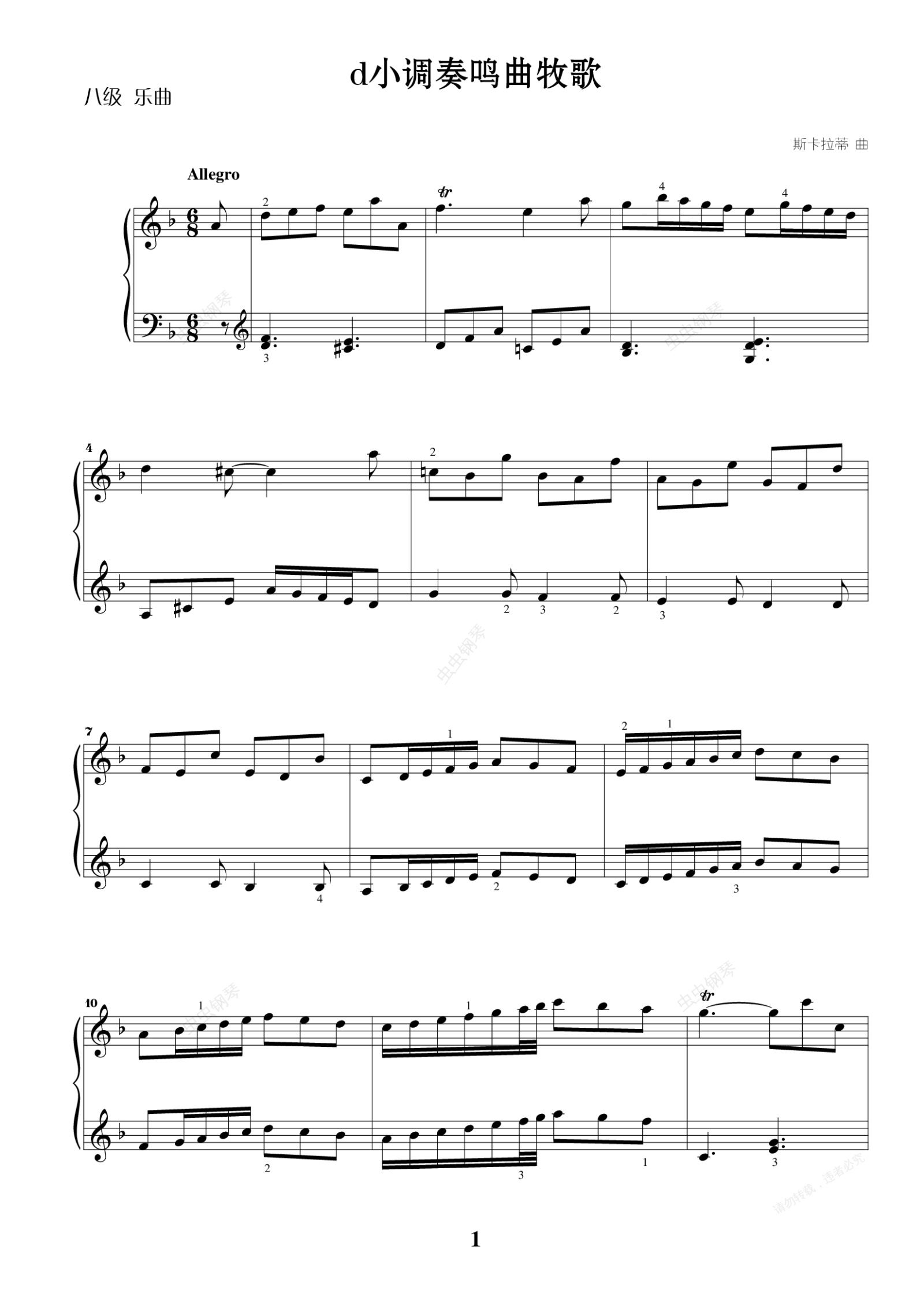 钢琴谱:第八级02d小调奏鸣曲牧歌
