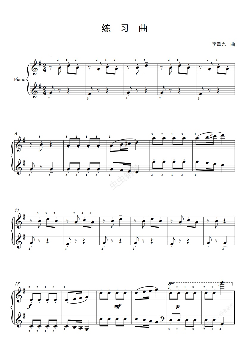 钢琴谱:1级B组-练习曲