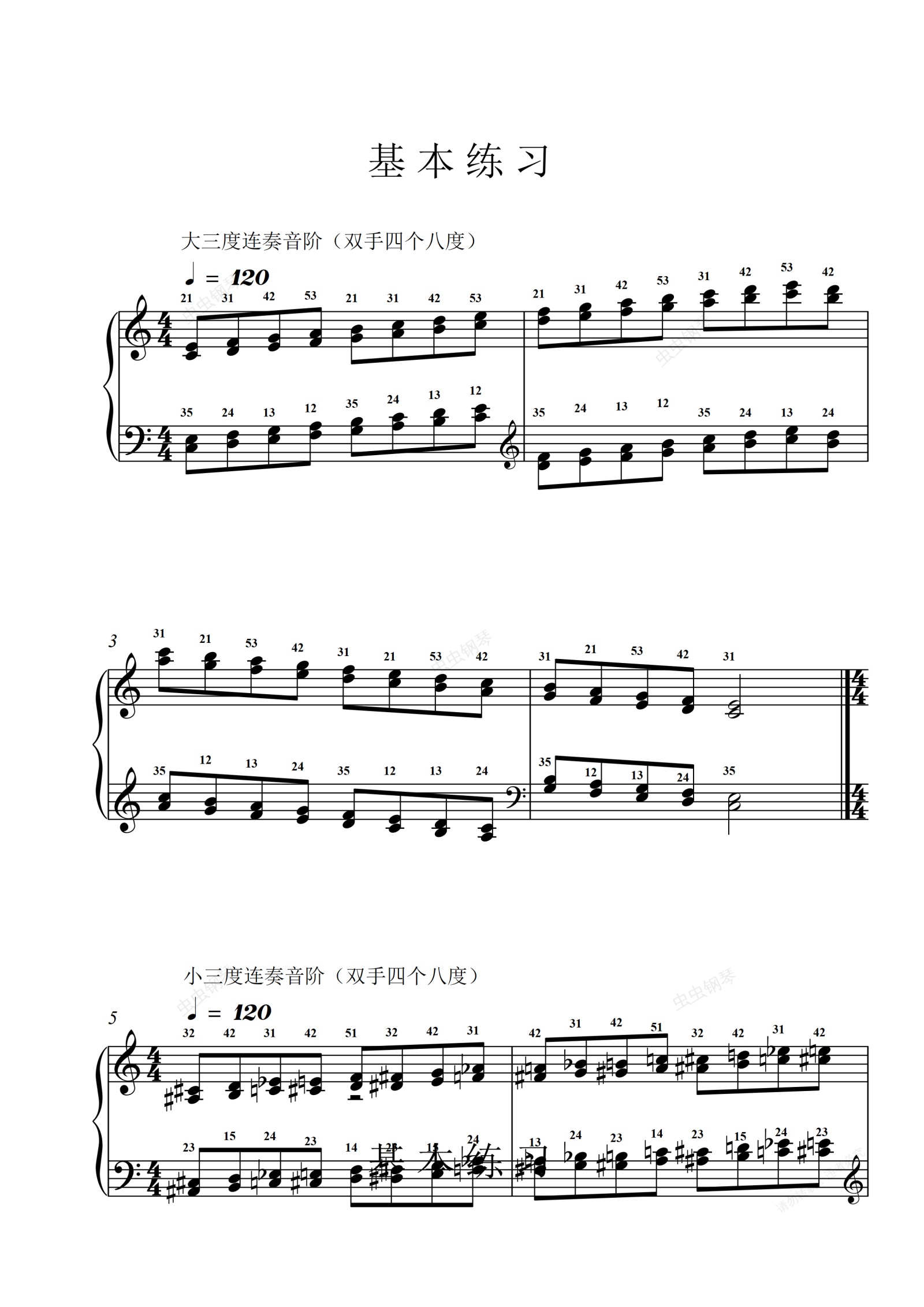 钢琴谱:9、10级基本-大小三度连奏音阶和全音阶