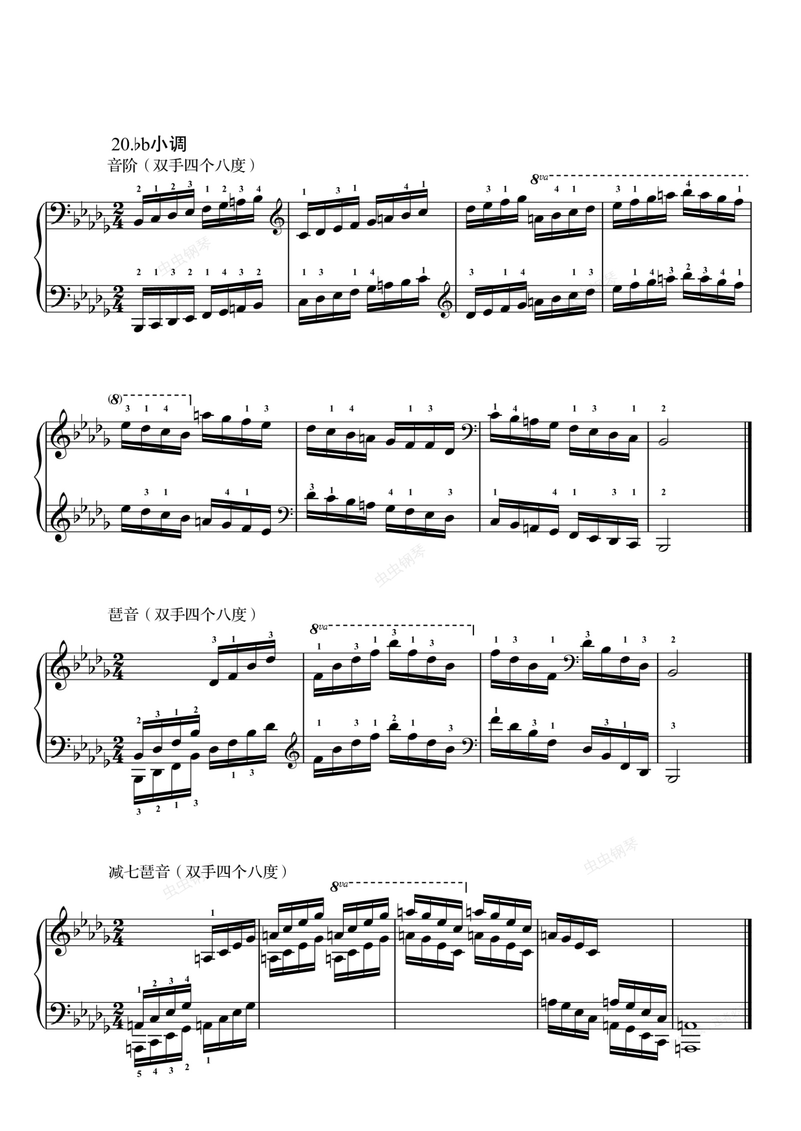钢琴谱:10级-降b小调音阶琶音