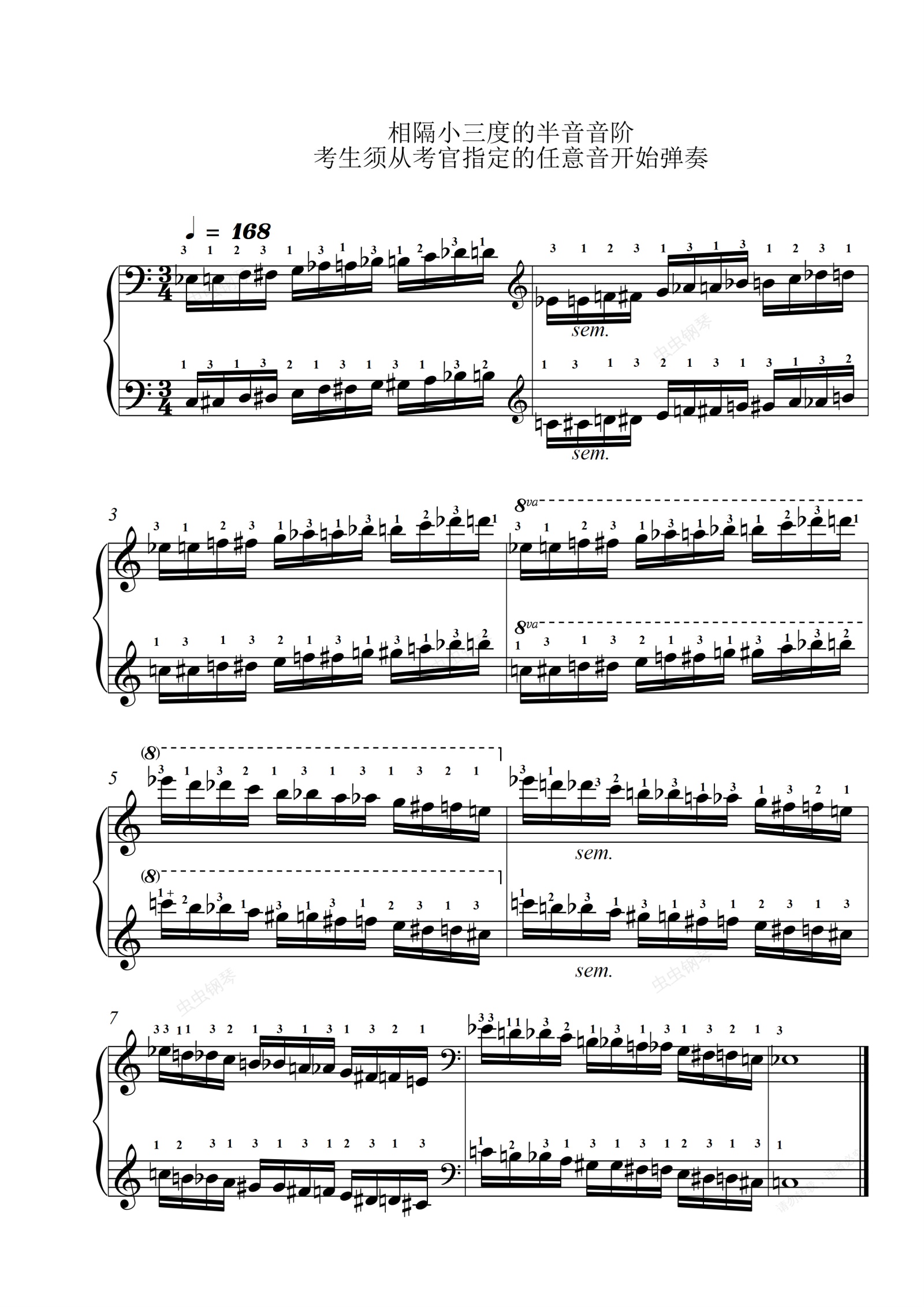 钢琴谱:10级基本-相隔小三度的半音音阶