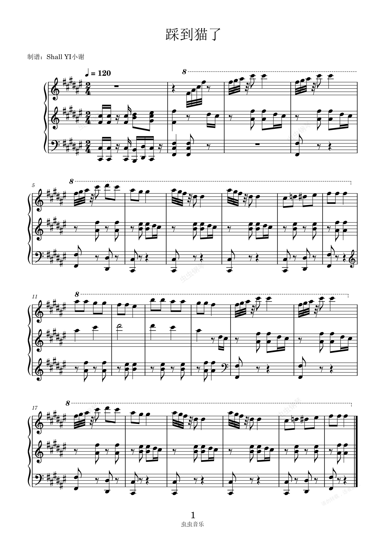 钢琴谱:踩到猫了 三手连弹
