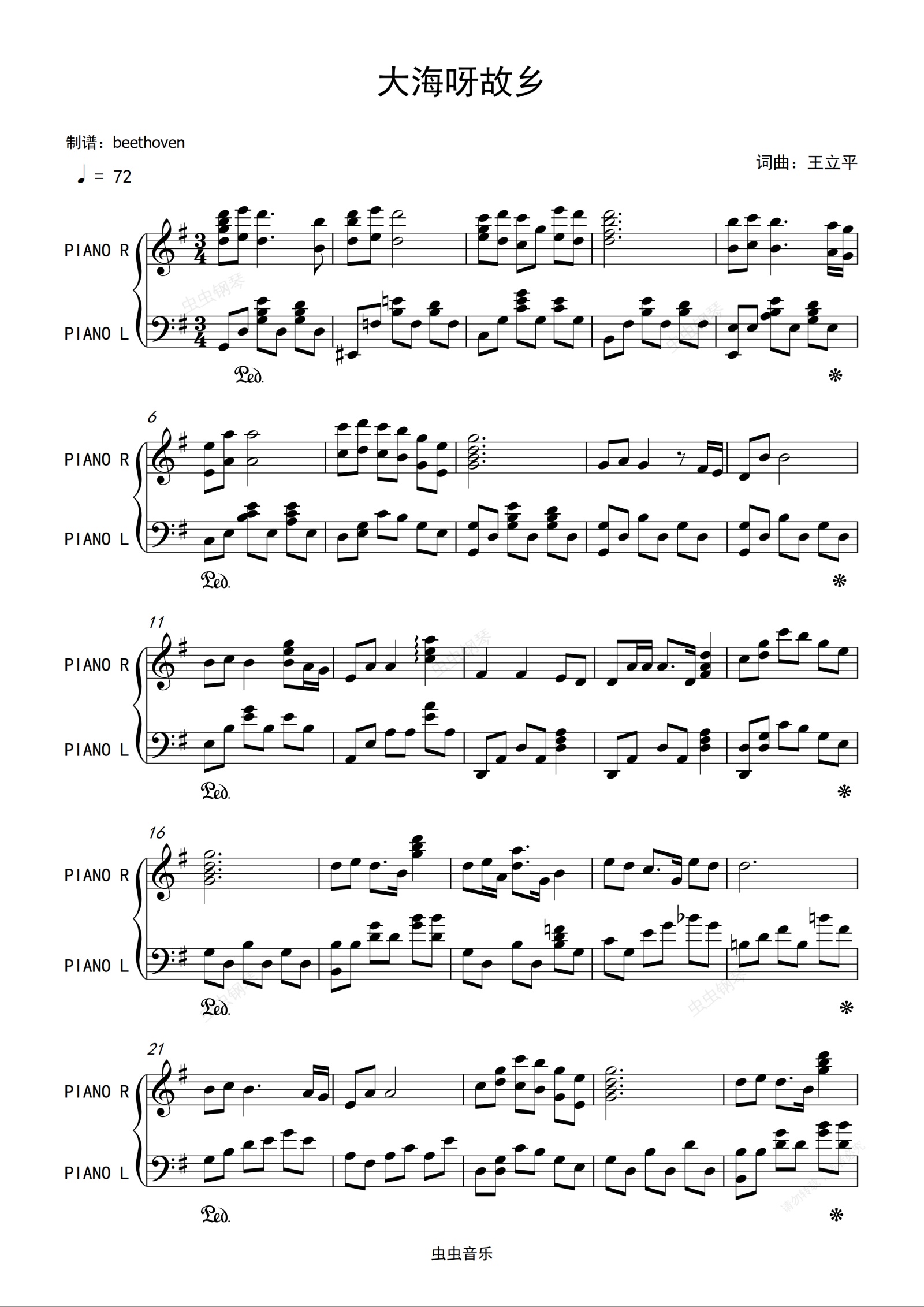 钢琴谱:大海啊故乡(钢琴弹奏)_朱明瑛