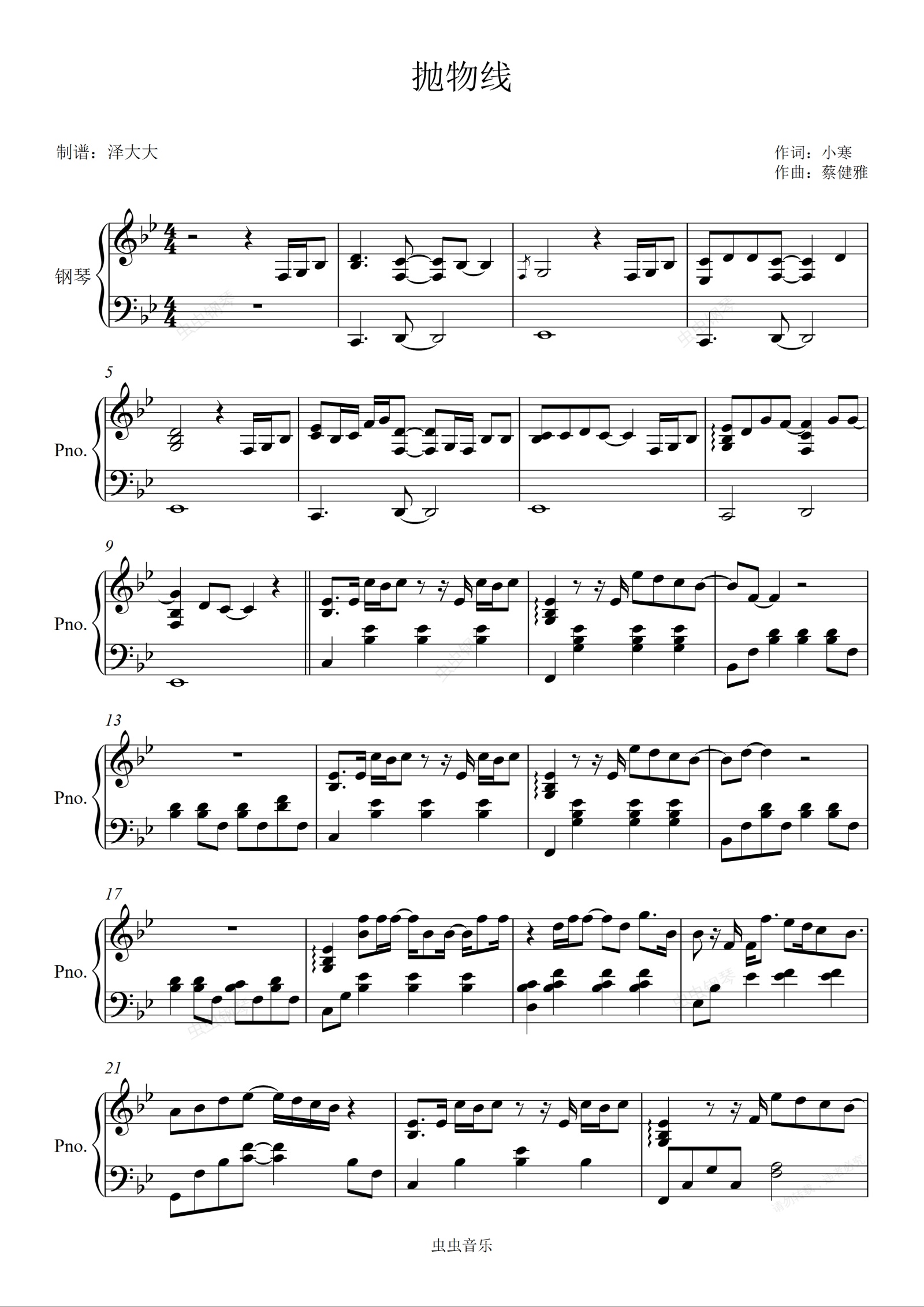 钢琴谱:抛物线【完美独奏版】泽大大制