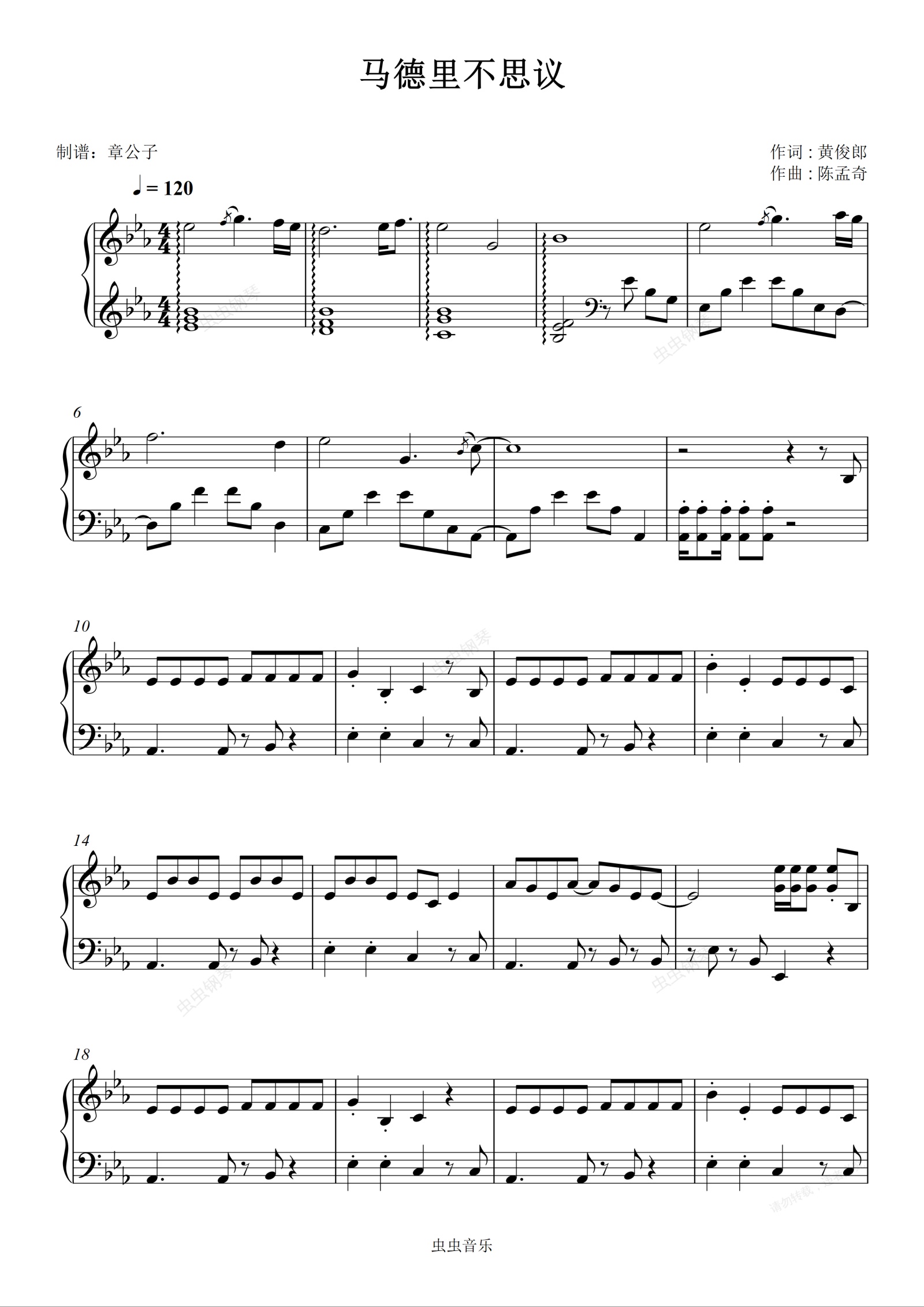 钢琴谱:《马德里不思议》(蔡依林) 独奏谱