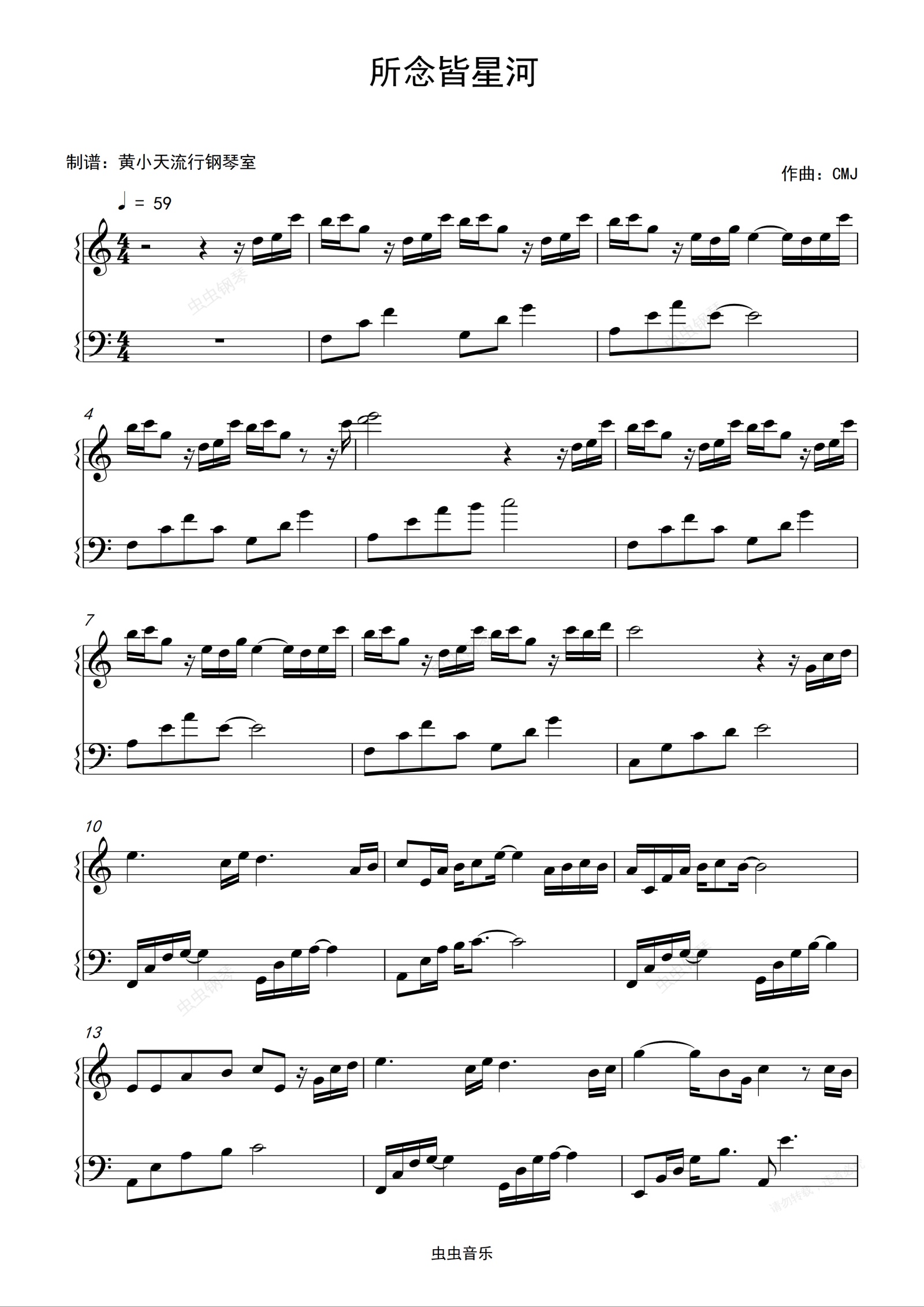 钢琴谱:《所念皆星河》C大调原版编配原版和弦简易好听