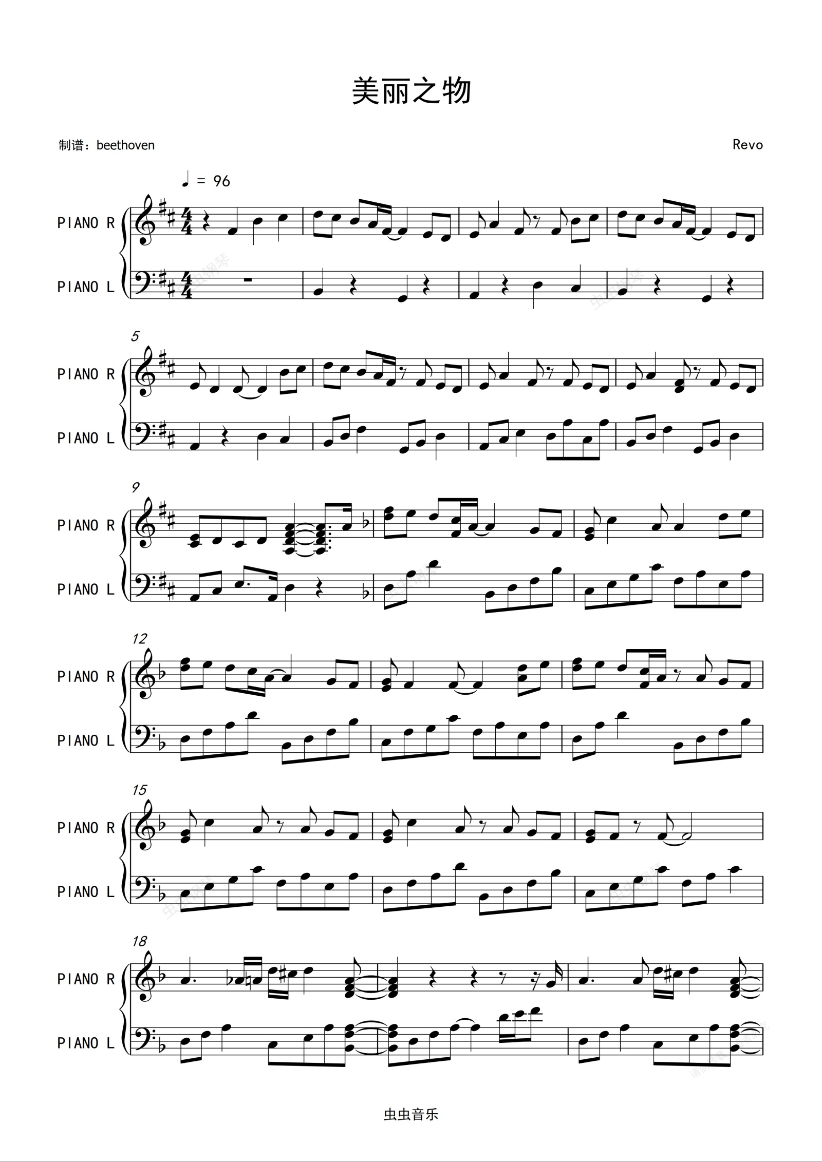 钢琴谱:《美丽之物》(美しきもの)_吉田有希【yuuki】