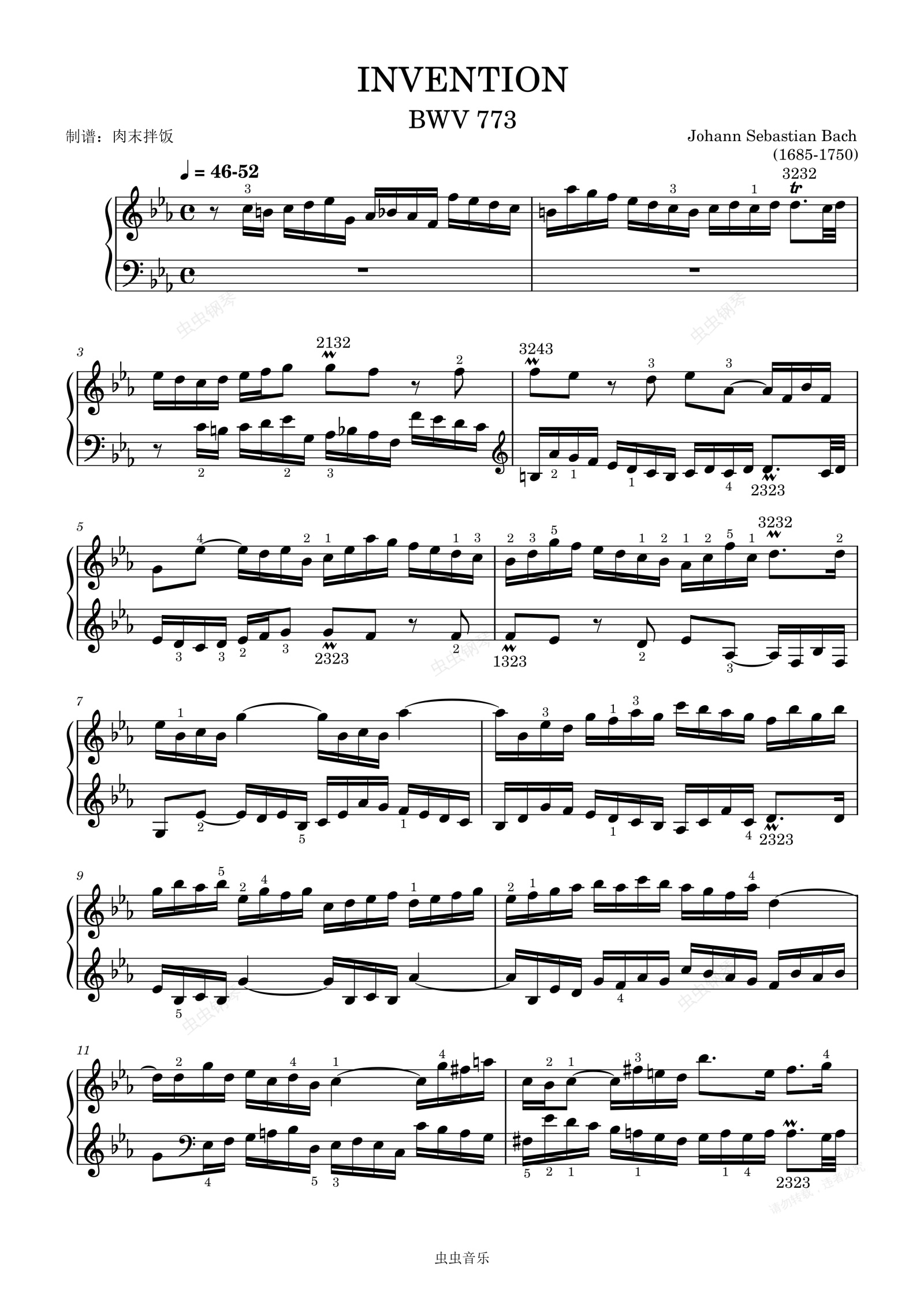 钢琴谱:C小调创意曲第2首 BWV 773(INVENTION)--巴赫(Johann Sebastian Bach)