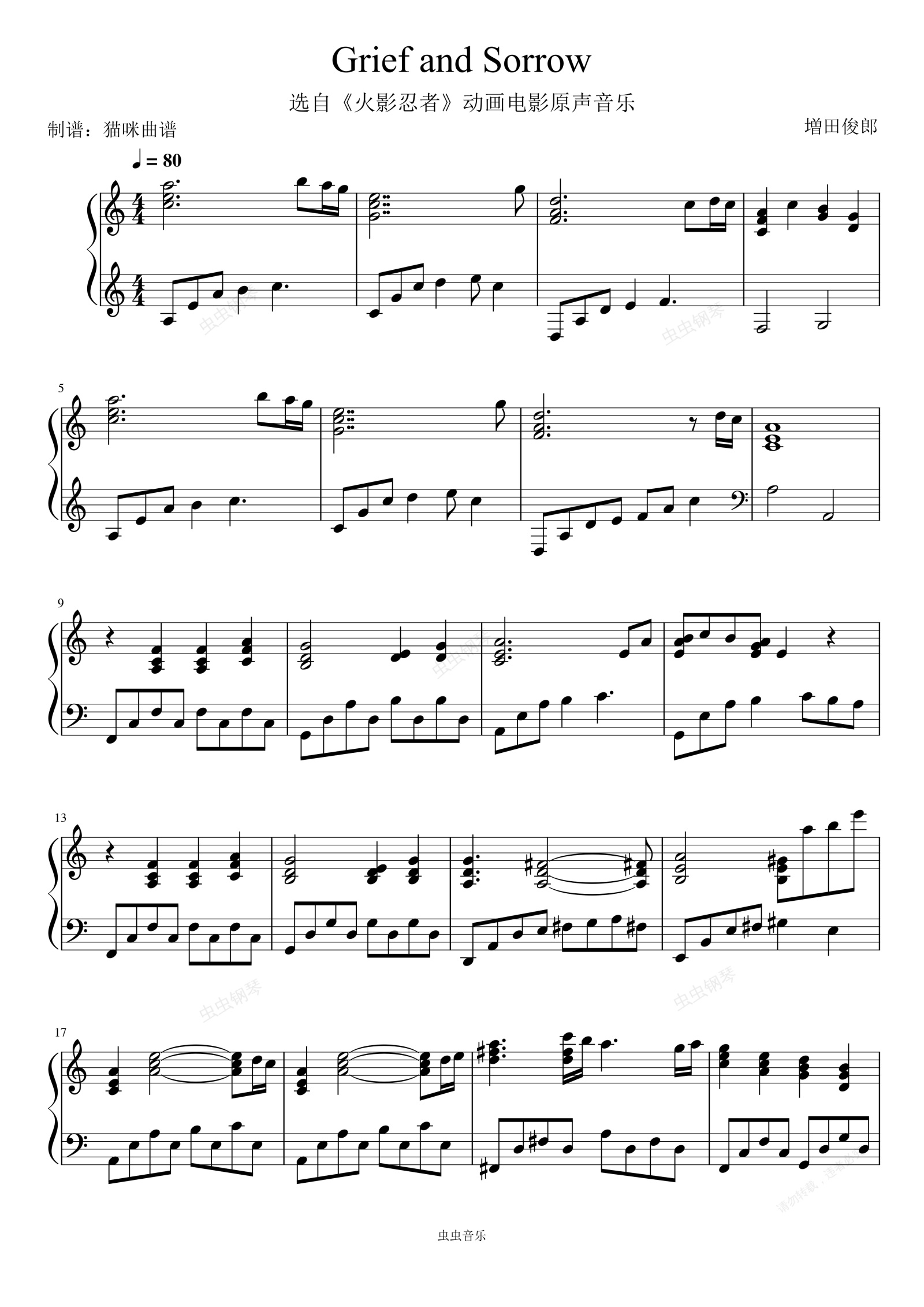 钢琴谱:Grief and Sorrow(火影忍者)