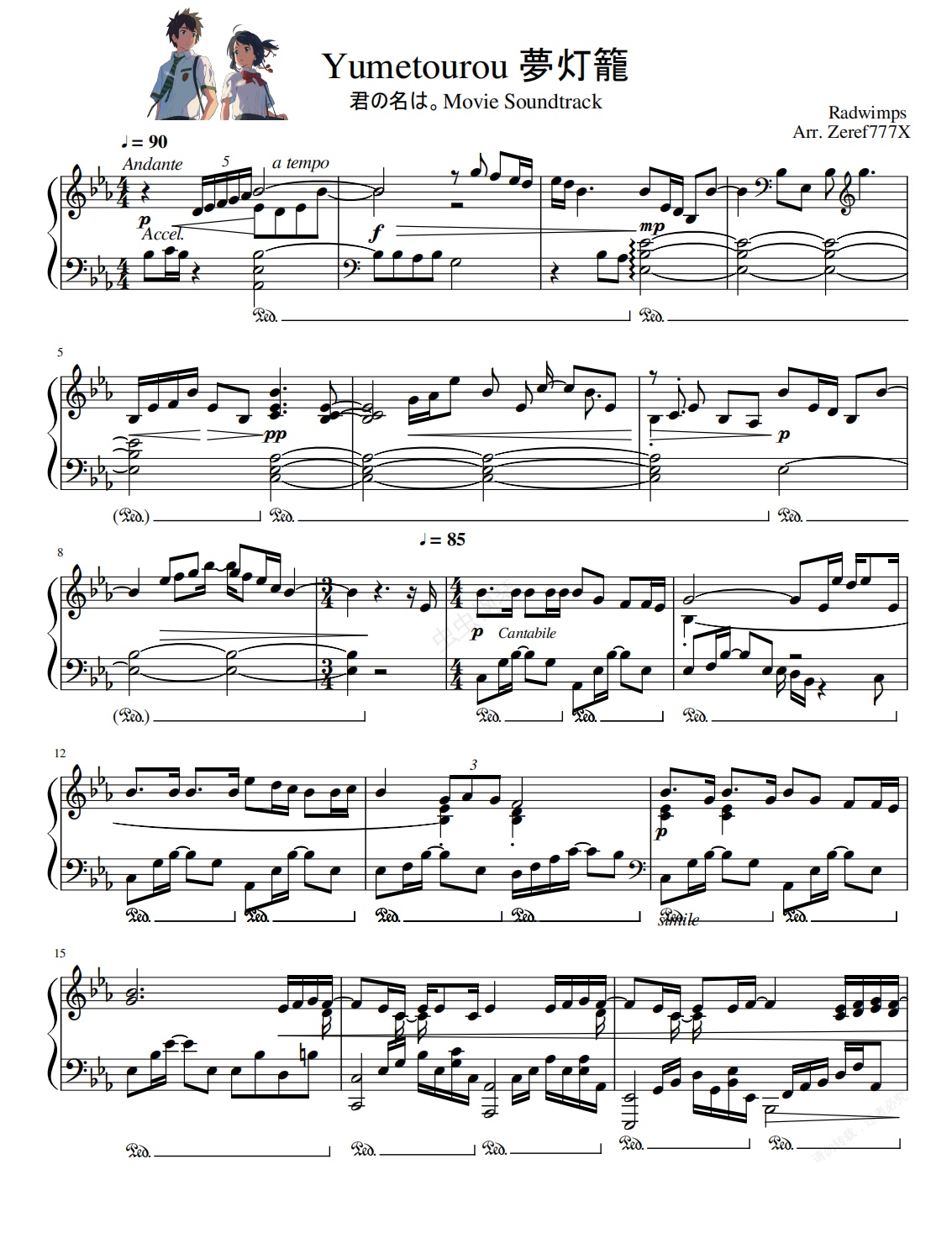 钢琴谱:Yumetourou 夢灯籠 bE调