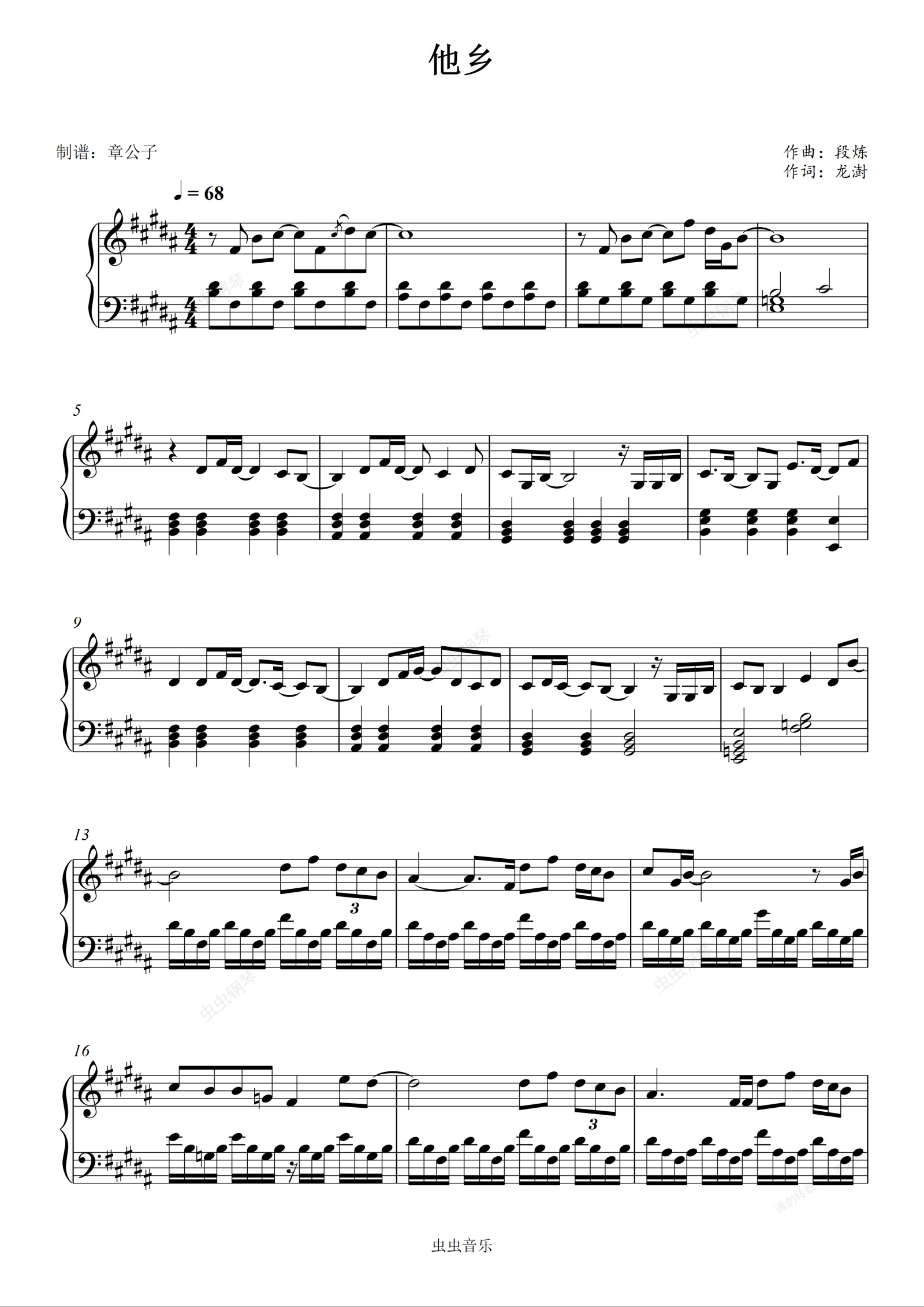 钢琴谱:《他乡》- 余佳运(《我在他乡挺好的》主题曲完整版)独奏谱